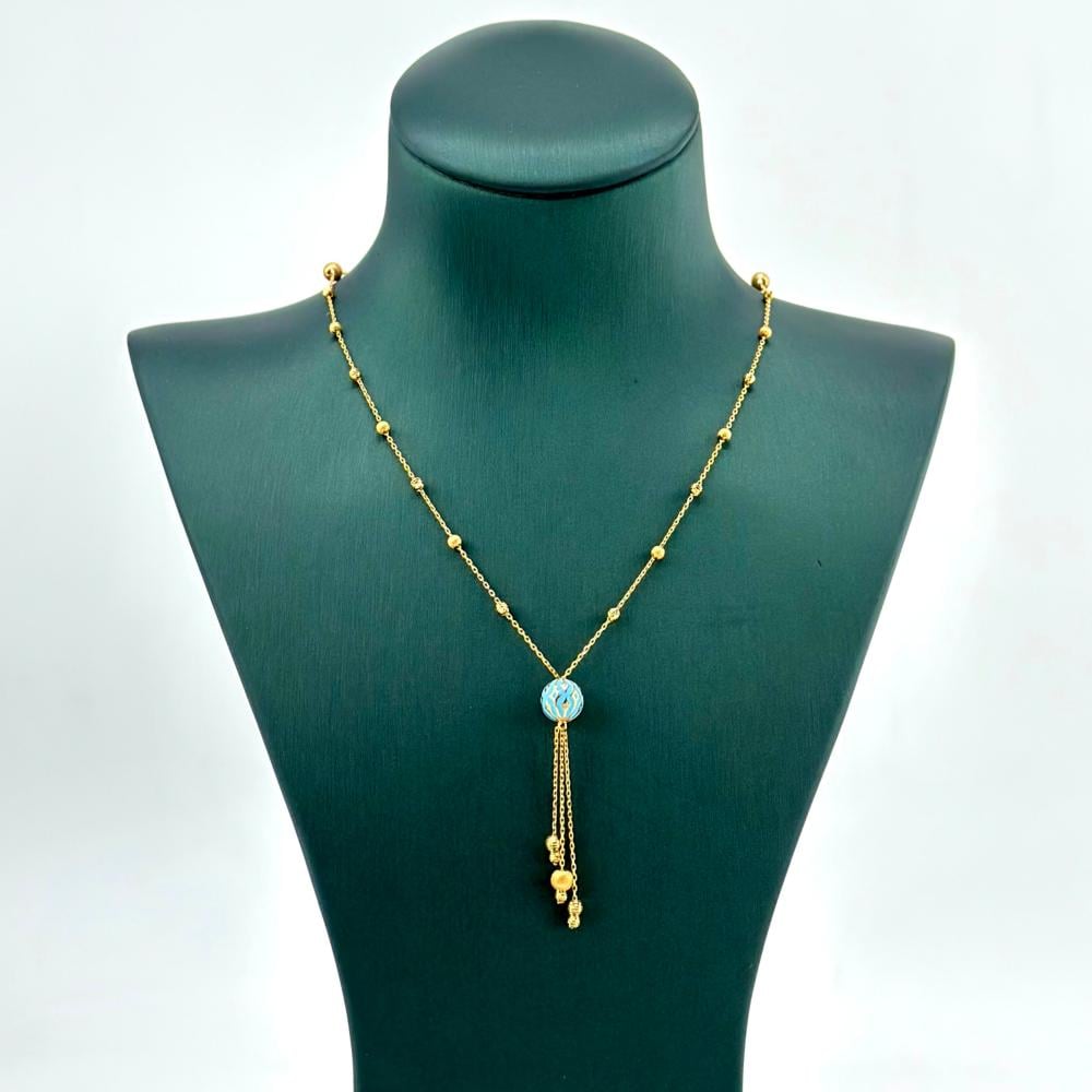 ارتدي عقد الذهب وكأنك تأمري العالم بجمالك. يتميز بقلادة جذابة ومتألقة تحمل في طياتها سحرًا لا يقاوم. سيأسر هذا العقد الأنظار ويثير إعجاب الجميع بتصميمه الفريد الذي يجمع بين الأناقة والجمال.