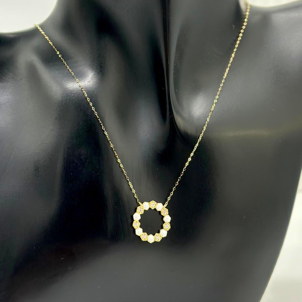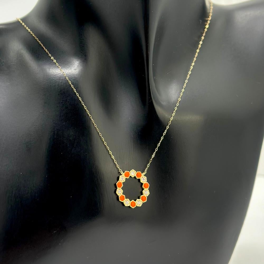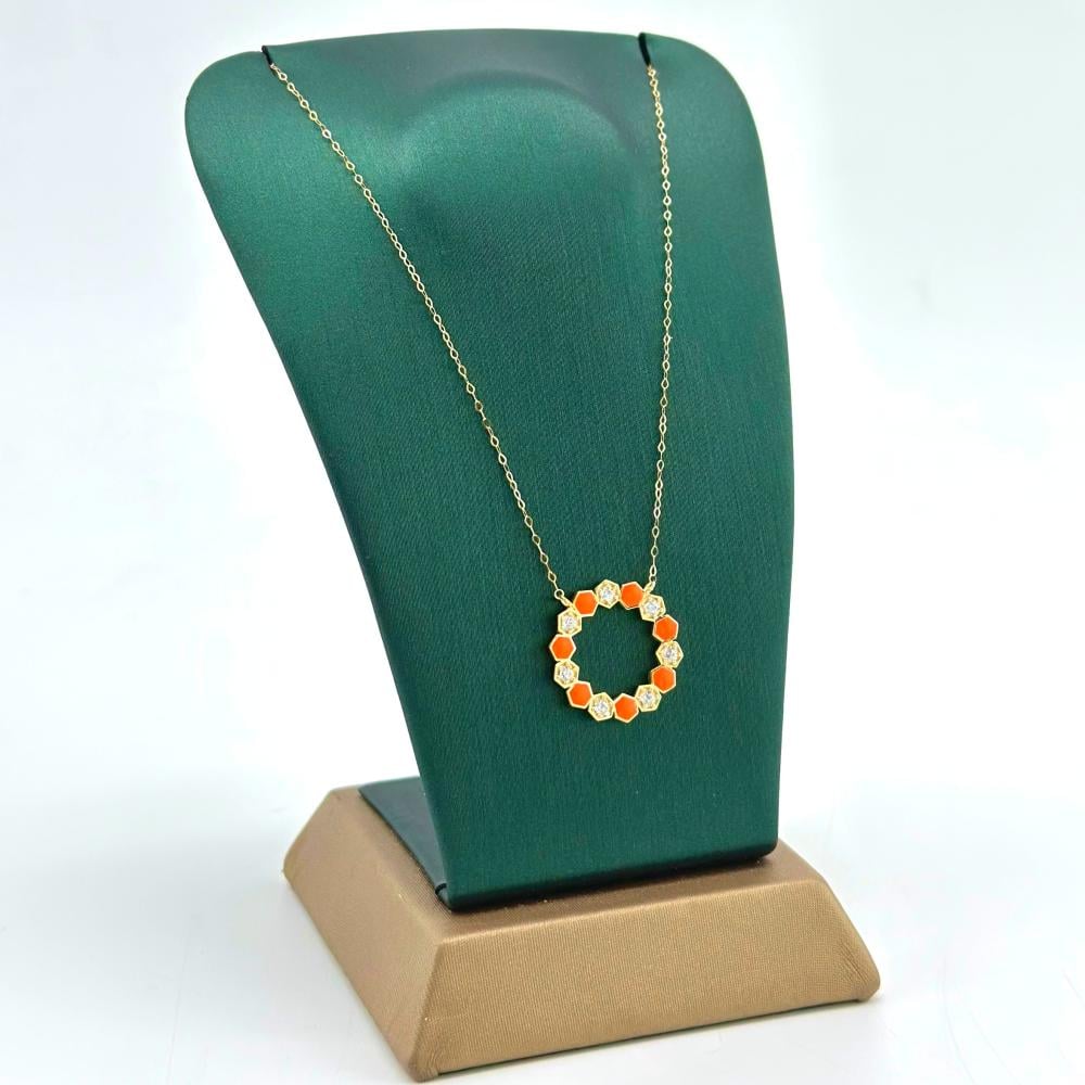 عقد الذهب عيار ١٨ من مجوهرات الشلوي يعبر عن أناقة رفيعة المستوى وأناقة لا مثيل لها. يأتي هذا العقد بتصميم ناعم وأنيق يجمع بين جمال الذهب عيار ١٨ وتفاصيل رائعة. تزين العقد ألوان المينا الزاهية التي تضفي عليه لمسة من الحيوية والجاذبية، بينما تتلألأ الفصوص الزريكون بريقًا مذهلًا يلفت الأنظار.