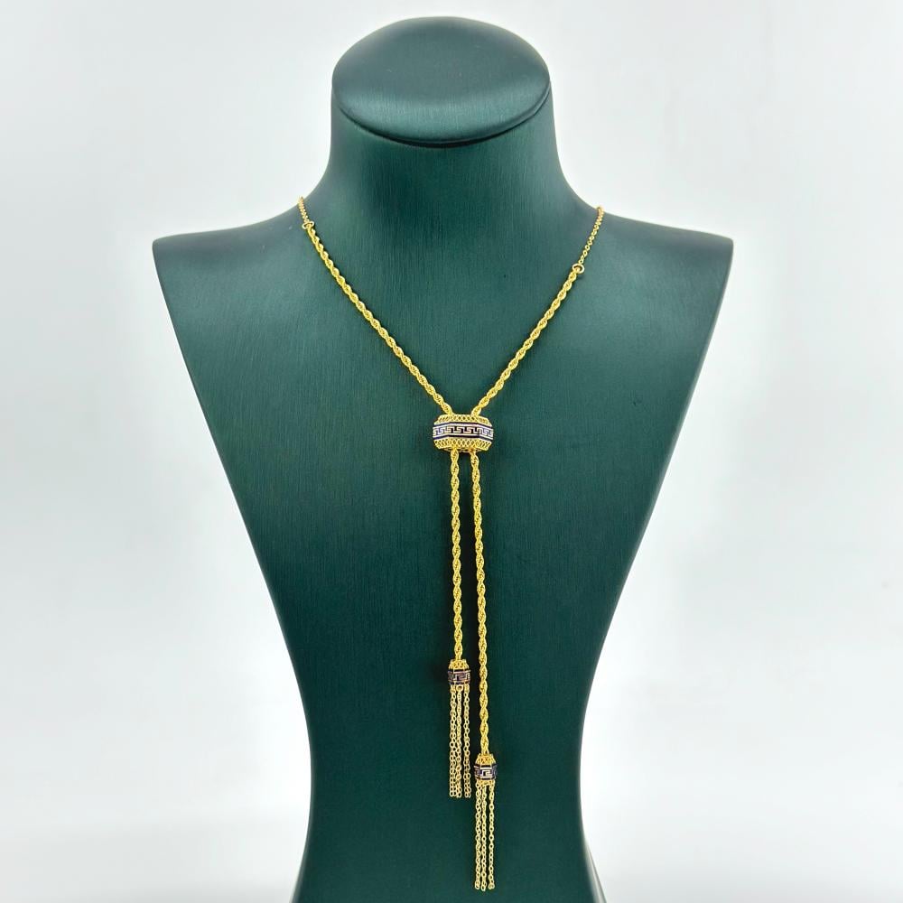 عقد من الذهب الأصفر عيار 21 بسلسال مبروم يتألق بتفاصيله الراقية، يتوسطه قلب متحرك مطعّم بلون المينا الجذاب. قطعة القلب تضيف لمسة حيوية وفريدة، ويمكن تغيير مكانها لتمنحك حرية الإبداع في إطلالتك، مما يجعل العقد مثالياً للتألق بلمسة من الجمال المتجدد والأناقة المتفردة.