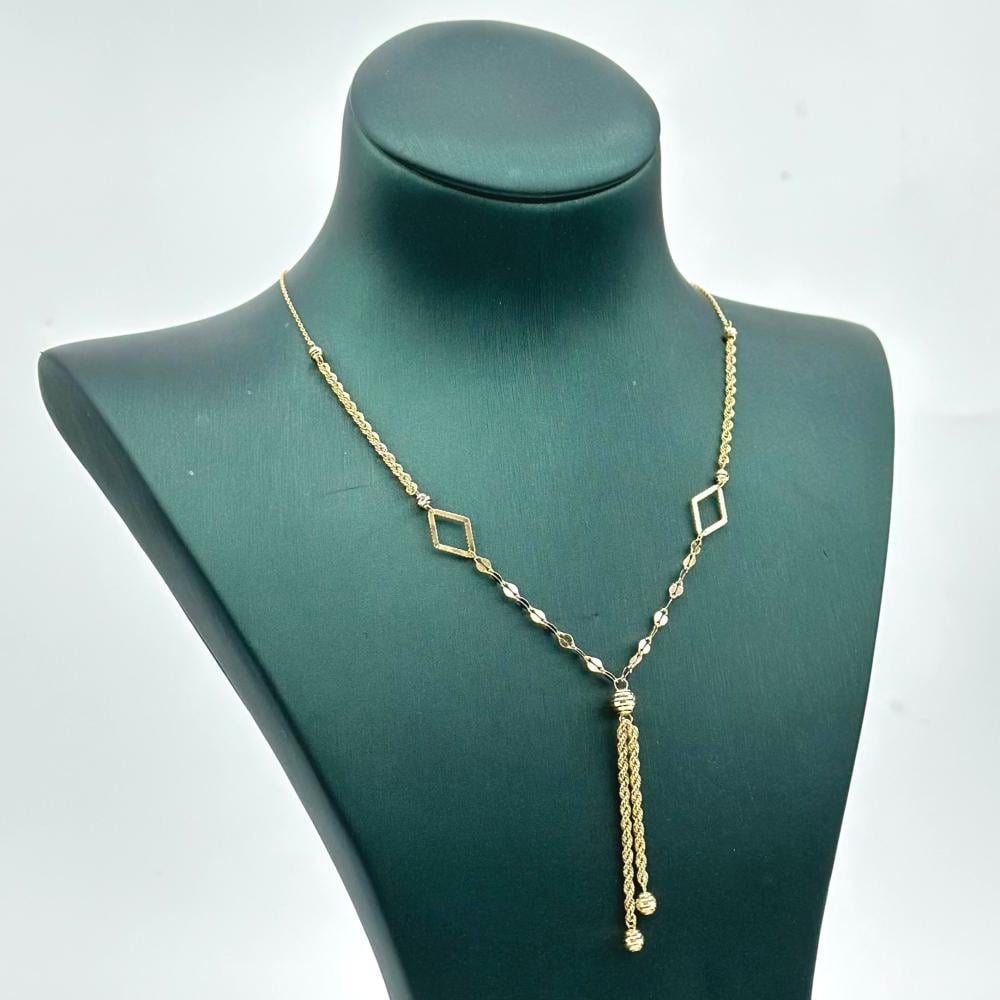 عقد ذهب عيار 18 بوزن 2.6 جرام، تصميم إيطالي ناعم مزين بكرات الليزر اللامعة. قطعة خفيفة وأنيقة تناسبك للبس اليومي أو للمناسبات البسيطة وتكمل طلتك بذوق راقي.