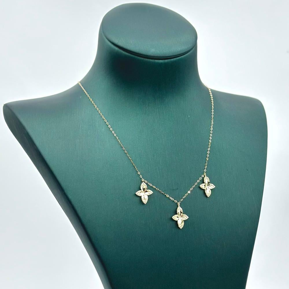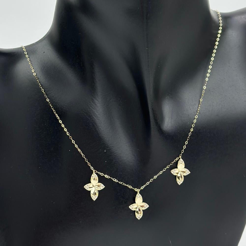 عقد ذهب عيار 18 مميز بالورود الثلاثيه ( 1.3 جرام - NE1455 )