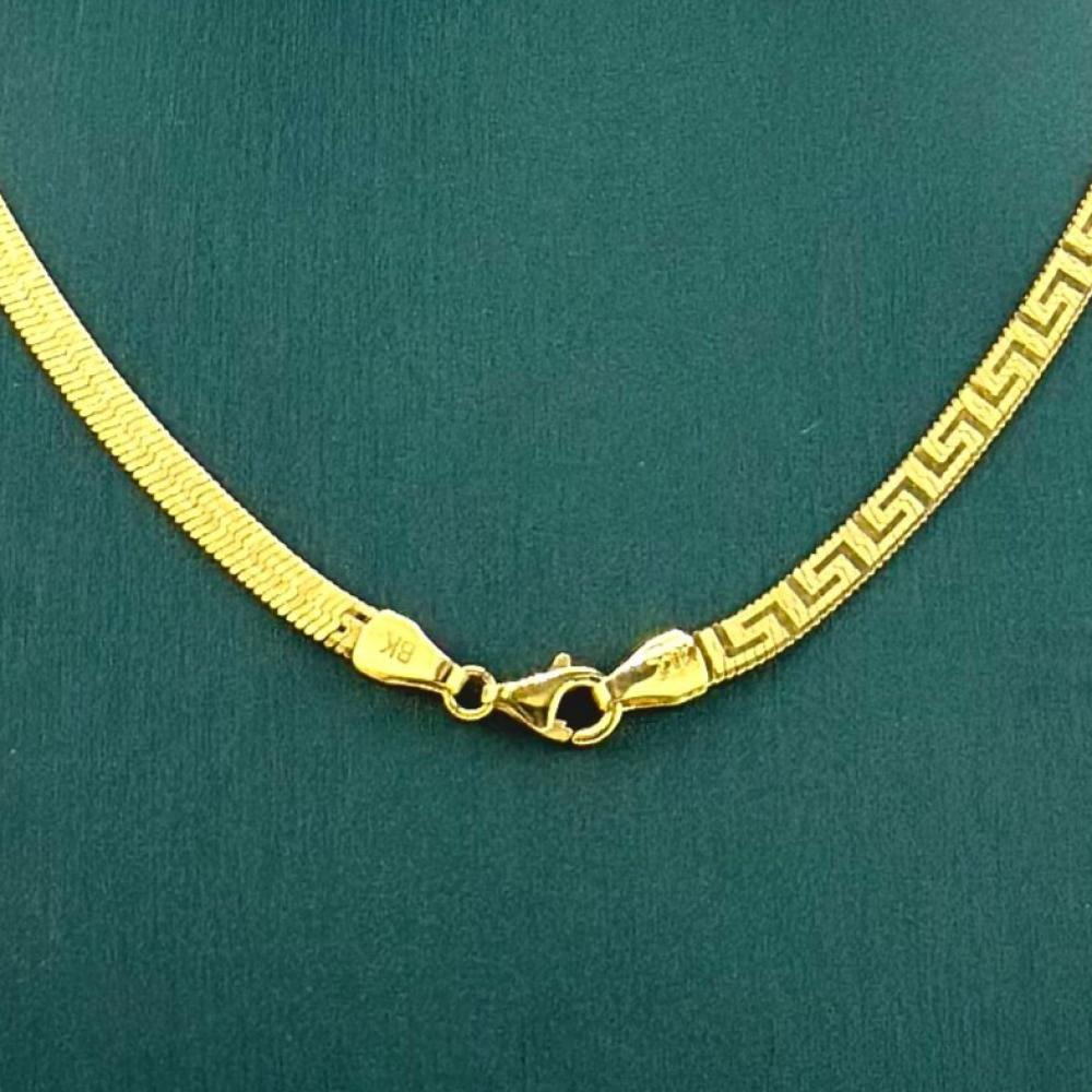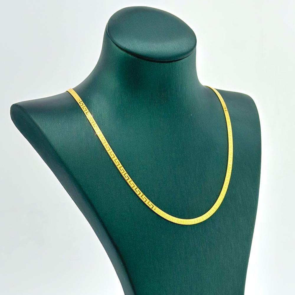 ارتقي بأناقتك مع عقد فلات مذهل من الذهب عيار 21, تصميمه العصري والبسيط يضفي لمسة من الفخامة على إطلالتك اليومية والمناسبات الخاصة, بريقه الذهبي يجذب الأنظار ويكمل جمالك بأسلوب راقٍ وفريد, أناقة لا تُضاهى تألقي بجاذبية الذهب الخالصة.