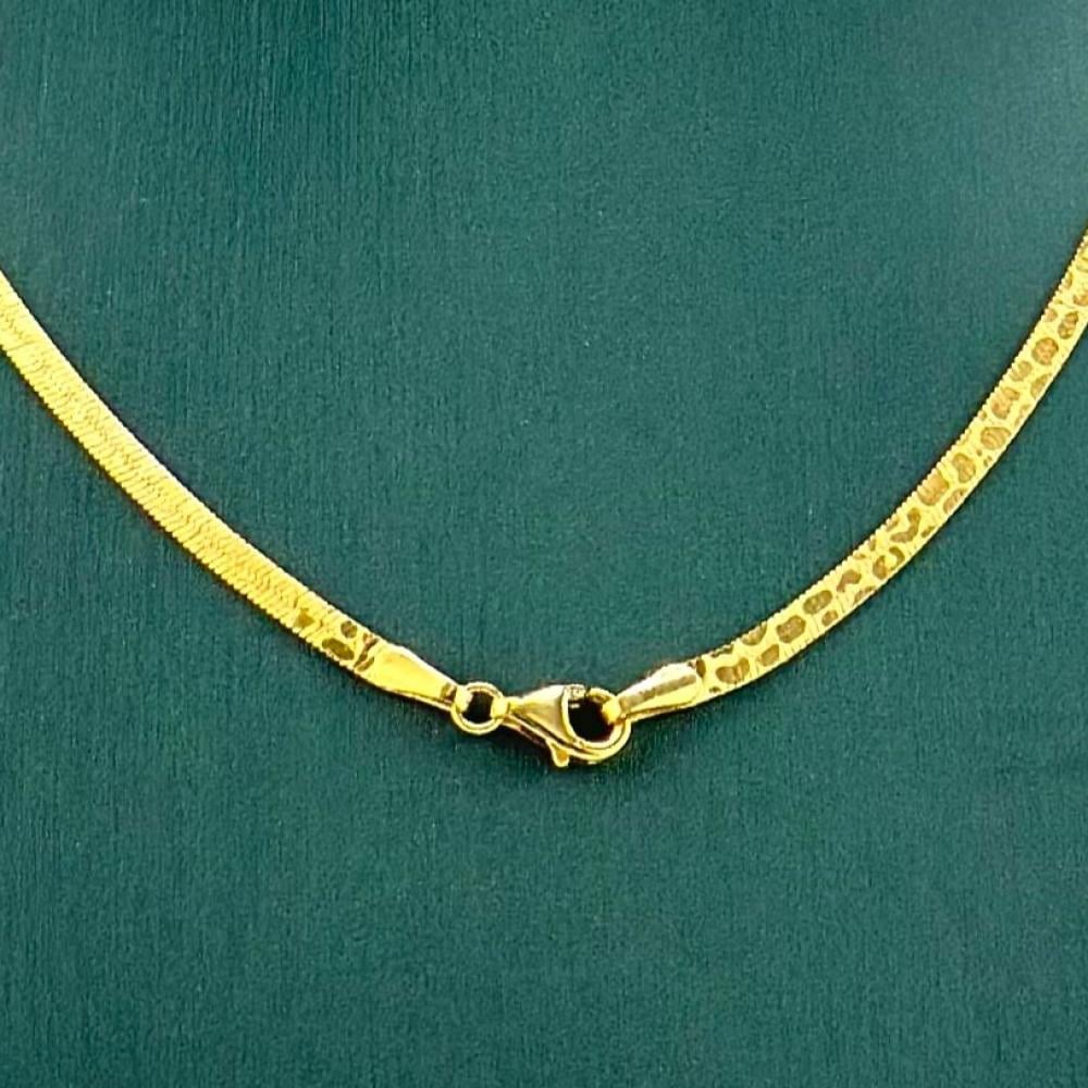 ارتقي بأناقتك مع عقد فلات مذهل من الذهب عيار 21, تصميمه العصري والبسيط يضفي لمسة من الفخامة على إطلالتك اليومية والمناسبات الخاصة, بريقه الذهبي يجذب الأنظار ويكمل جمالك بأسلوب راقٍ وفريد, أناقة لا تُضاهى تألقي بجاذبية الذهب الخالصة.