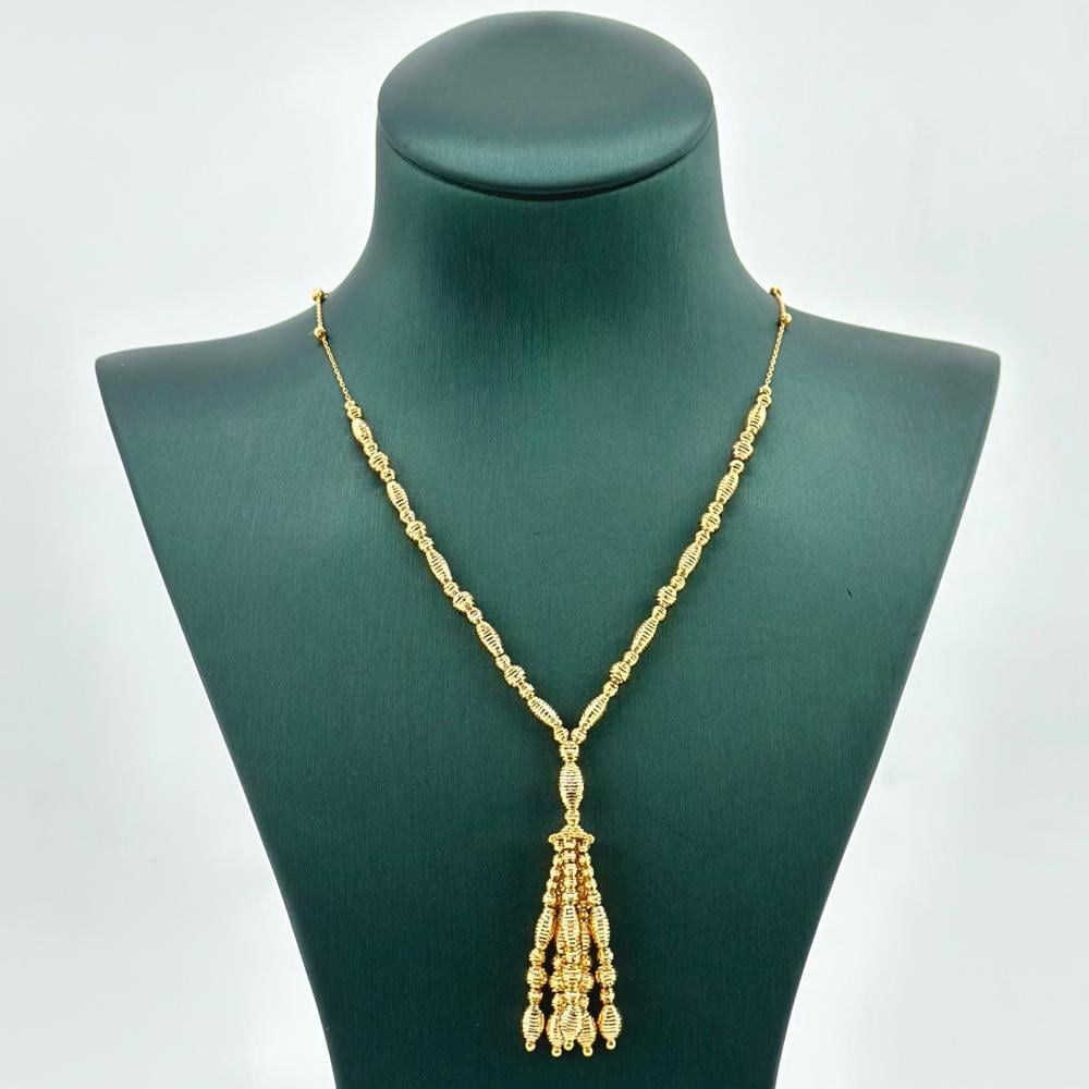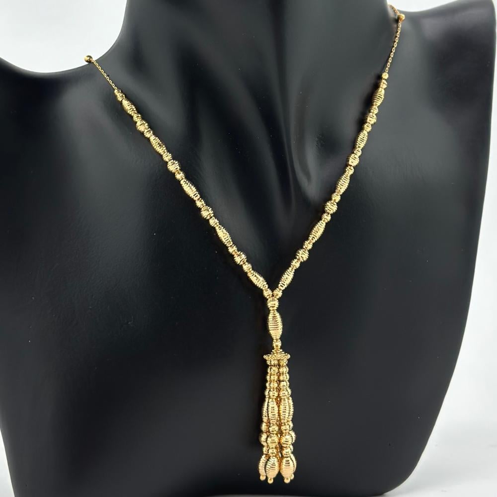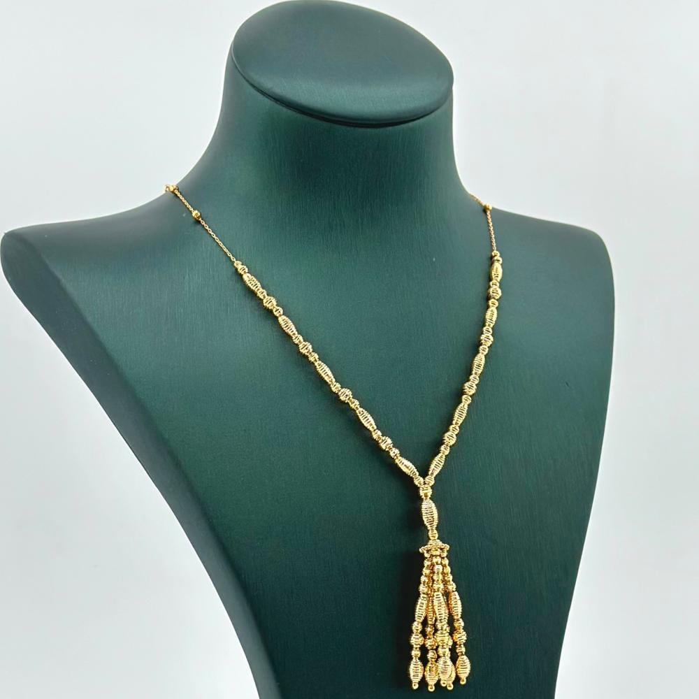 ارتدي عقد الذهب وكأنك تأمري العالم بجمالك. يتميز بقلادة جذابة ومتألقة تحمل في طياتها سحرًا لا يقاوم. سيأسر هذا العقد الأنظار ويثير إعجاب الجميع بتصميمه الفريد الذي يجمع بين الأناقة والجمال.