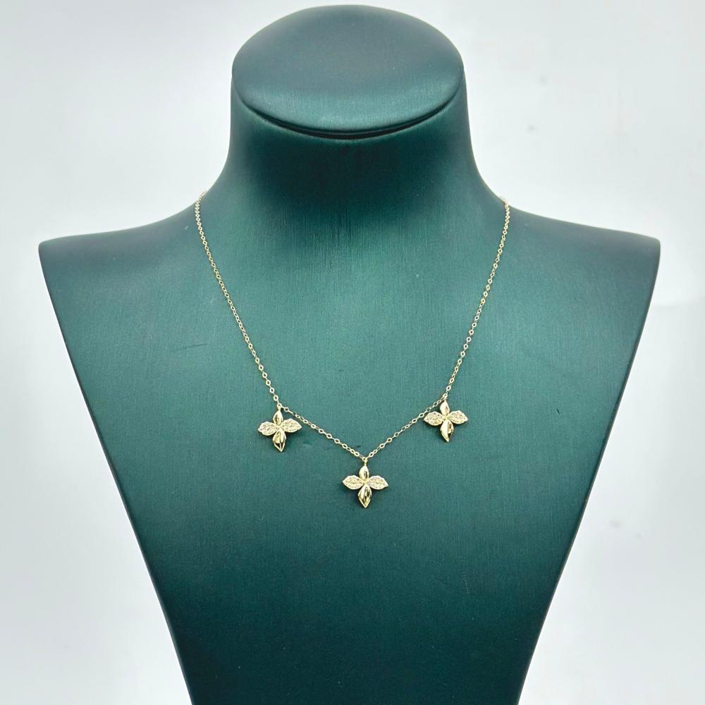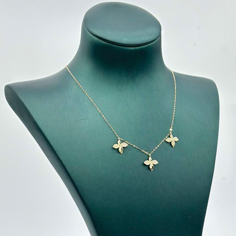 عقد ذهب ناعم عيار 18 بتصميم الورود الثلاثيه ( 1.3 جرام - NE1458 )