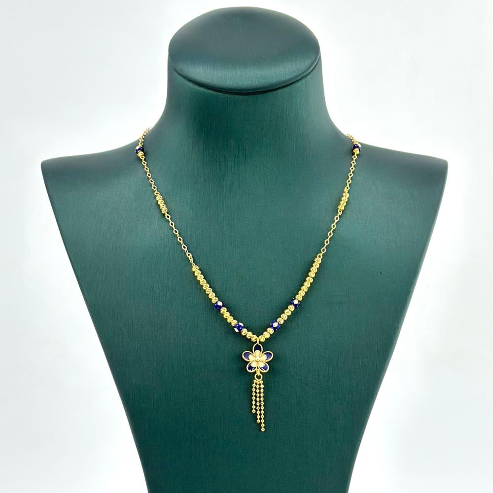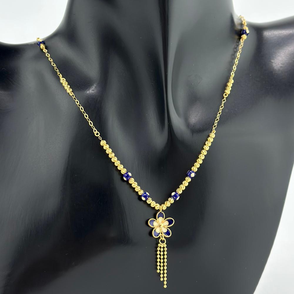 يتميز العقد بتصميم هندي مذهل، حيث تجتمع فخامة الذهب وجمالية كرات المينا لإضفاء لمسة من الفخامة والجاذبية.