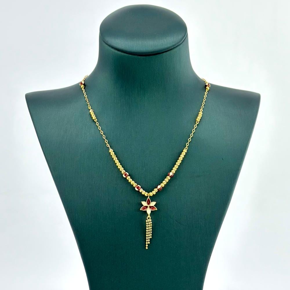 استمتعي بتألقك واجذبي الأنظار بعقود الذهب عيار 21 من مجوهرات الشلوي.