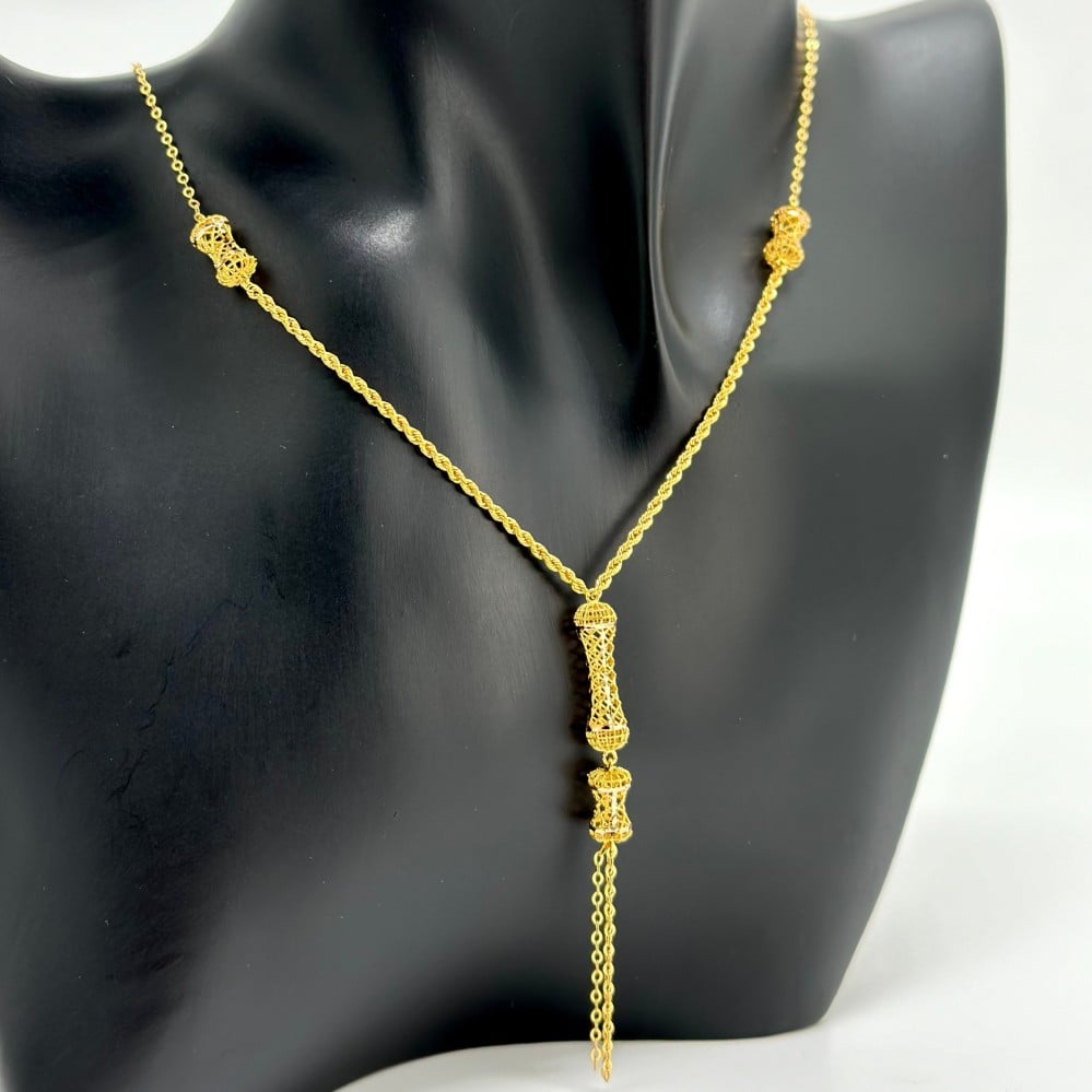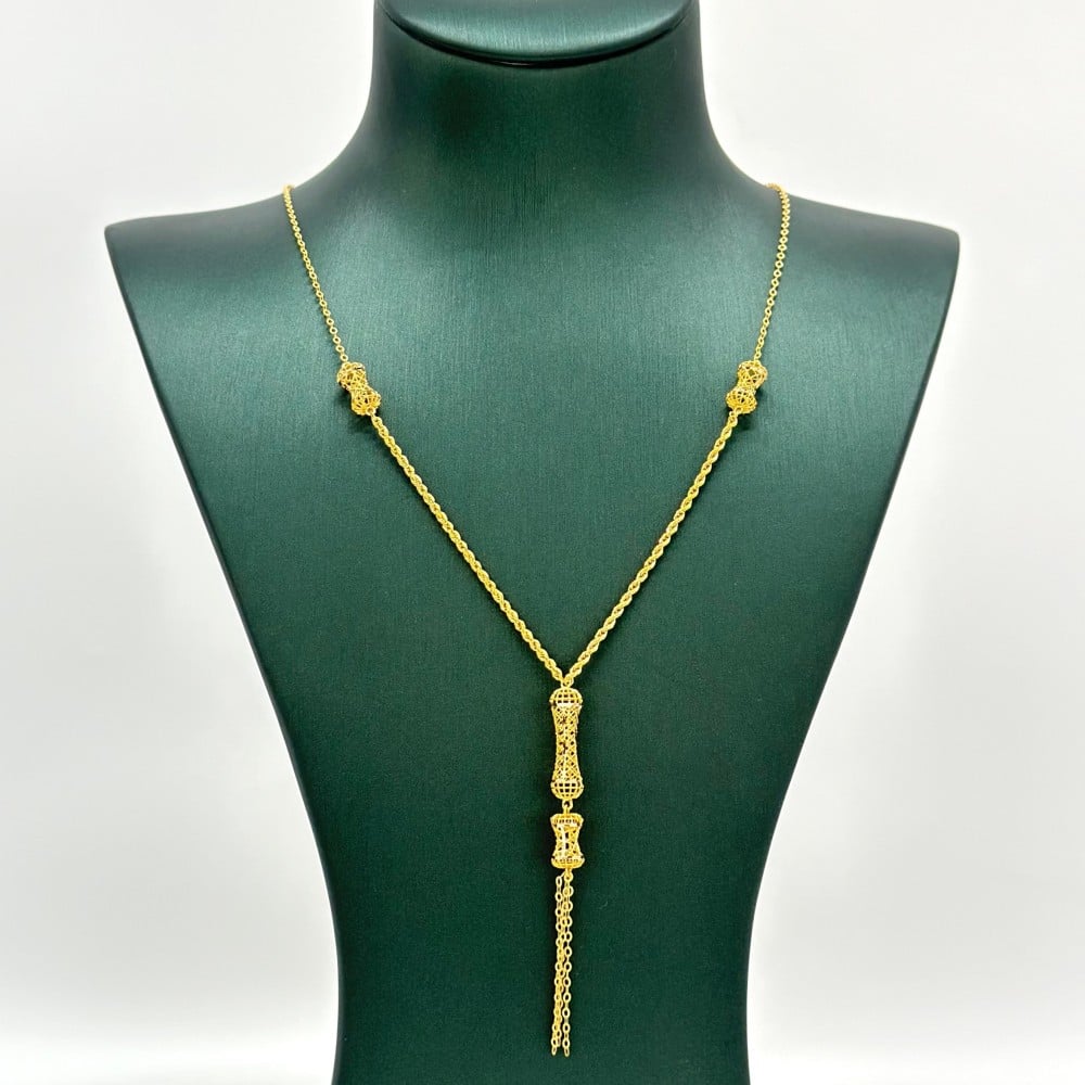 استمتعي بتألقك واجذبي الأنظار بعقود الذهب عيار 21 من مجوهرات الشلوي.