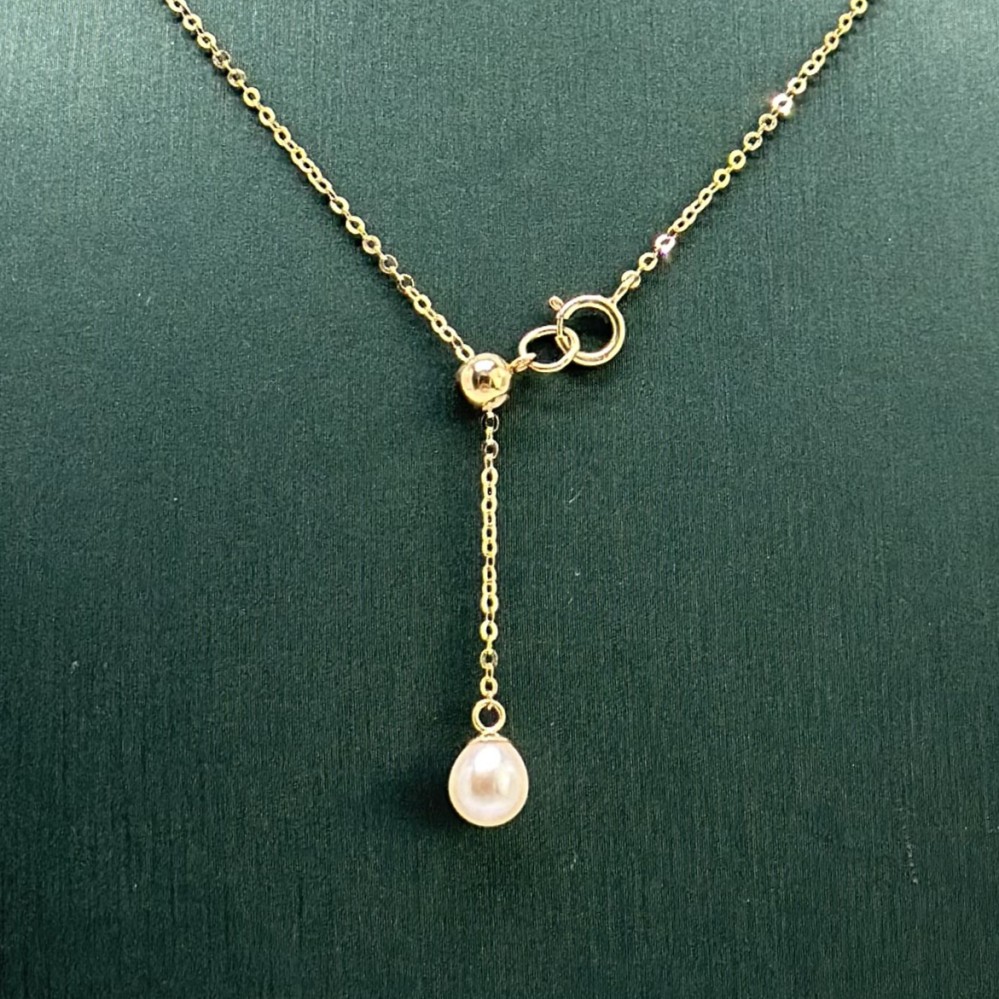 تُزيّن إطلالتكِ بحكاية من اللؤلؤ الزراعي المتلألئ، كأنّها قطرات من ندى الصباح على شاطئٍ من الذهب الأبيض.