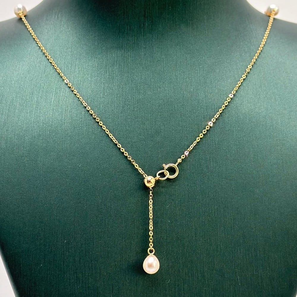 تُزيّن إطلالتكِ بحكاية من اللؤلؤ الزراعي المتلألئ، كأنّها قطرات من ندى الصباح على شاطئٍ من الذهب الأبيض.
