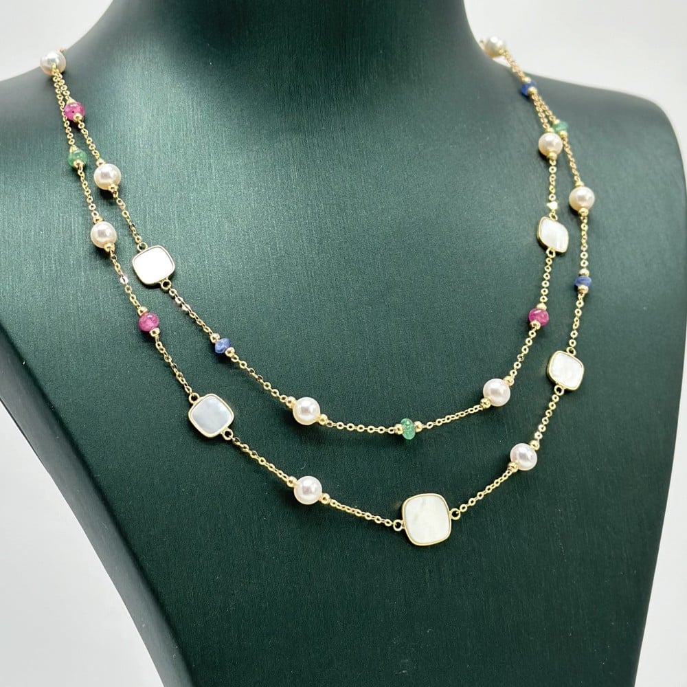 تُزيّن حبات الصدف الملون العقد كأنّها نجوم لامعة في سماء الليل، تُضفي لمسة من الفخامة والتميز.