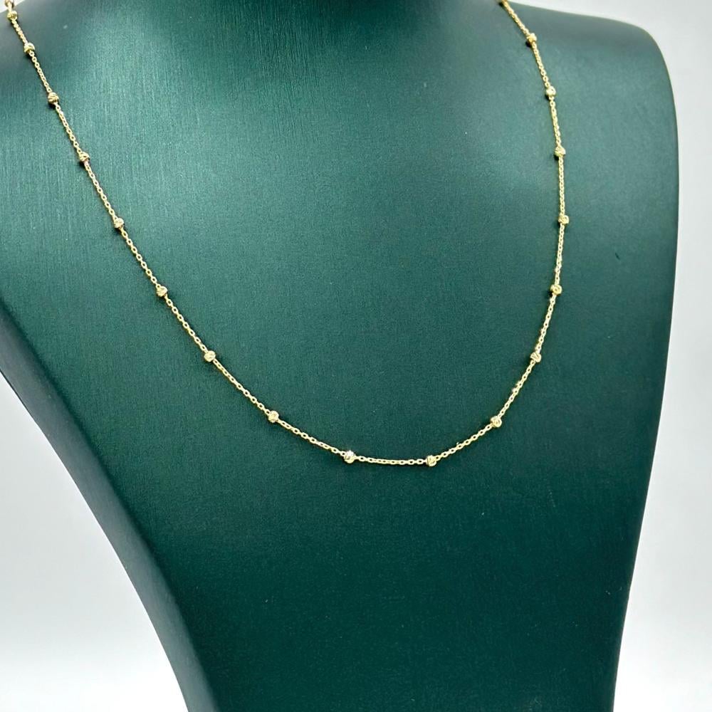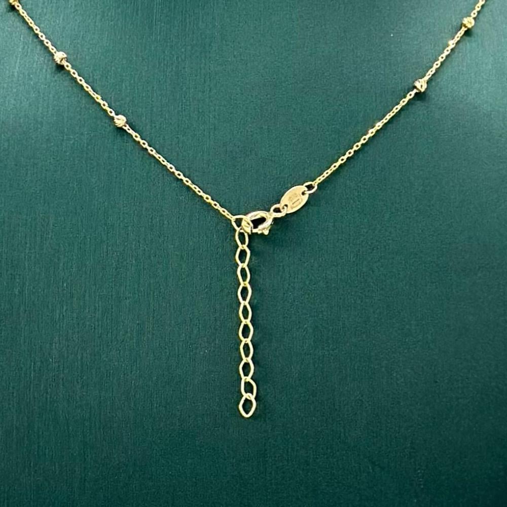امنحي إطلالتك لمسة من السحر والأناقة مع هذا العقد الفريد المصنوع من كرات الليزر اللامعة، حيث يتلألأ الذهب بأناقة لافتة تجسد جمال التصميم وروعة الحرفية.✨
