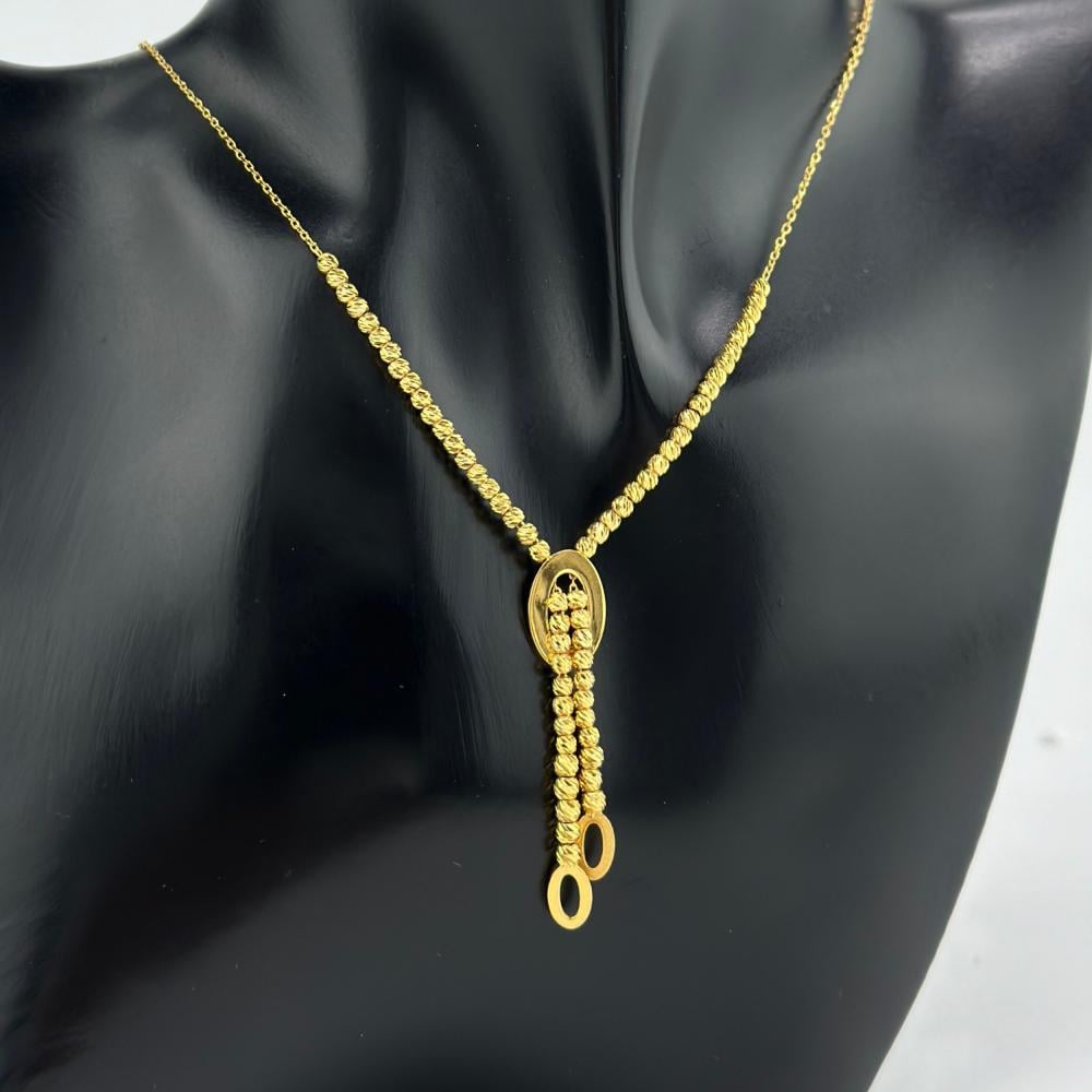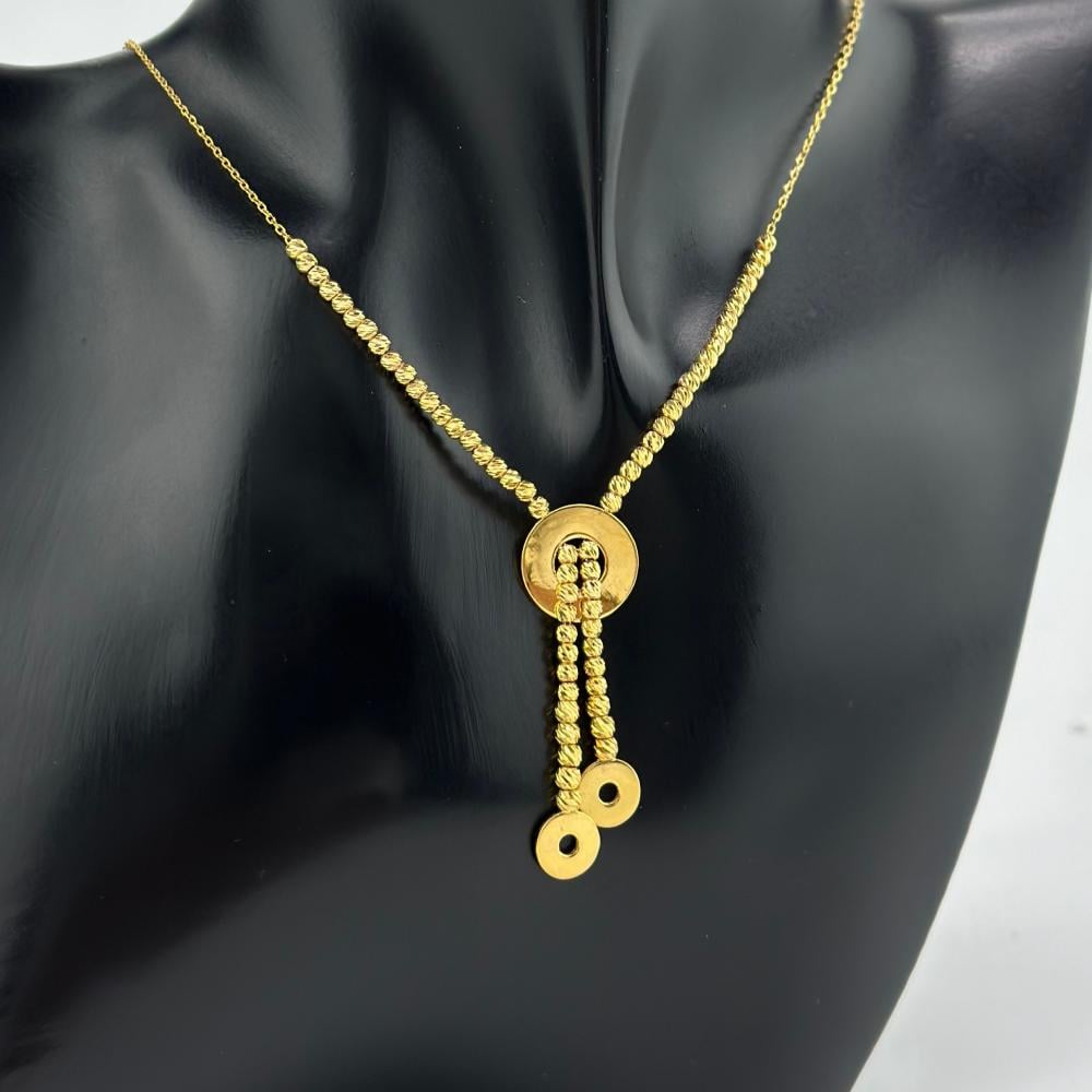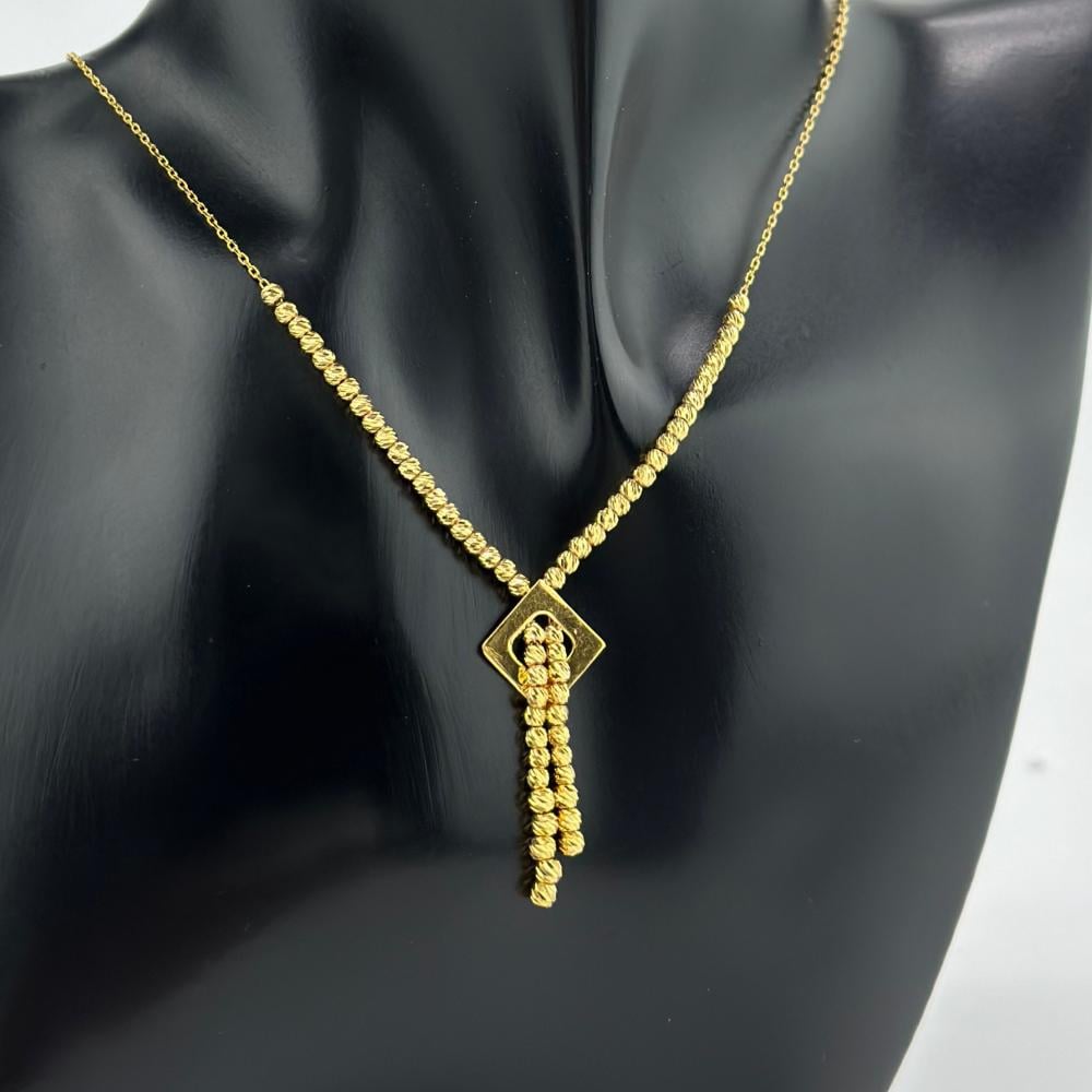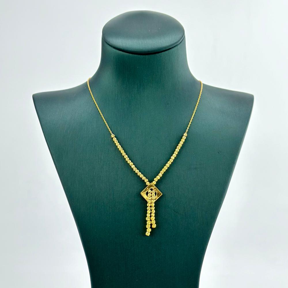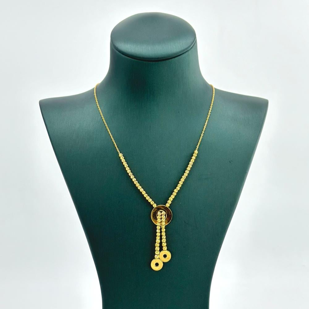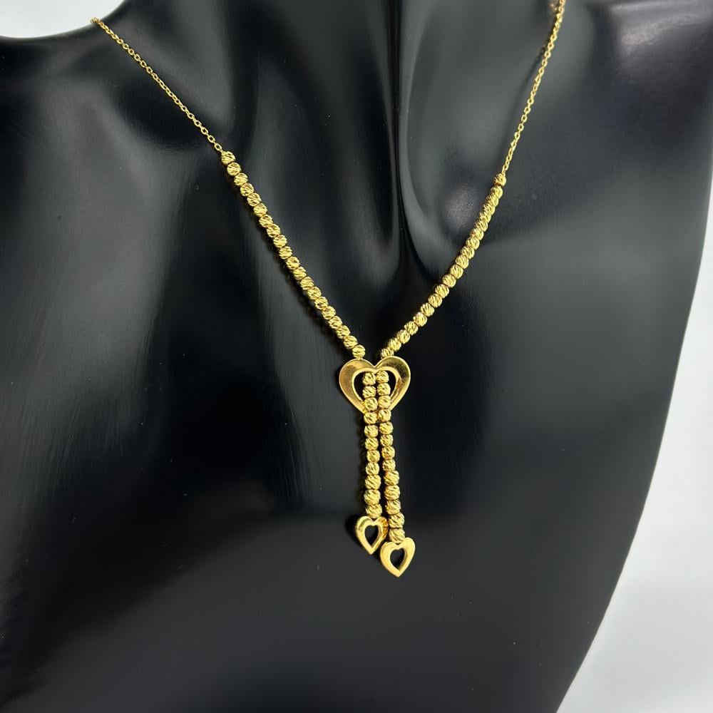عقد من الذهب الأصفر عيار 21 من مجوهرات الشلوي، تتراقص فيه كرات الليزر كنجوم تتلألأ في سماء صافية، مصفوفة بأناقة تعانق العنق بلمسة من الفخامة. وفي مركزه تنبض الاشكال الساحرة، رمزًا للحب الأبدي، ليجعل من إطلالتك قصيدة من الأنوثة والجاذبية.✨