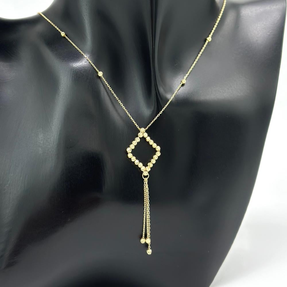 على مساحة العقد الفريد من نوعه، تتناغم كرات الليزر يجمالها لتخلق توازناً ساحراً. تبرز الكرات ببريقها ولونها الذهبي الفاتح، وتلفت الأنظار بسحرها الخاص، مما تضفي على العقد تألقاً متجدداً وفريداً.✨