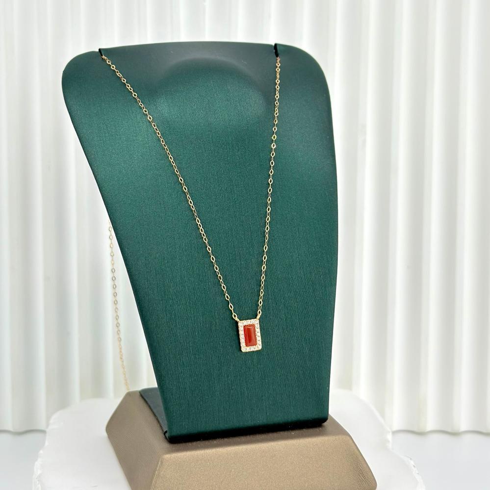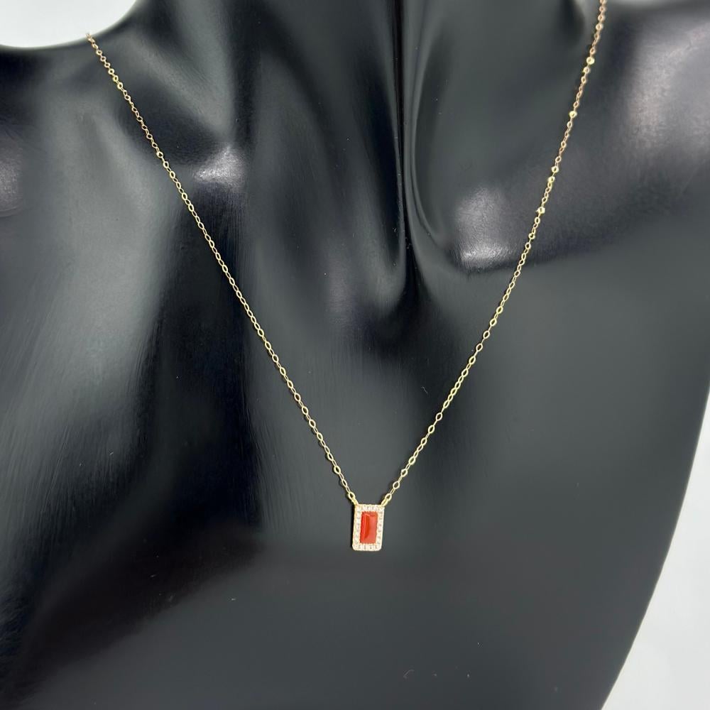 عقد ذهب أصفر تصميم الماس عيار 21 من مجوهرات الشلوي، حيث يأتي بتصميم يحمل في قلبه حجر بشكل مستطيل محاط بفصوص الزركون البراقة. يجمع هذا التصميم بين الأناقة والفخامة، ليضفي لمسة مميزة على إطلالتك في كل مناسبة.