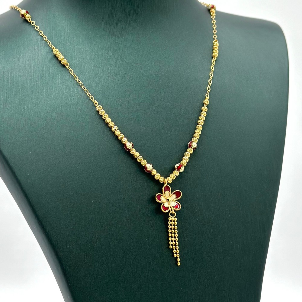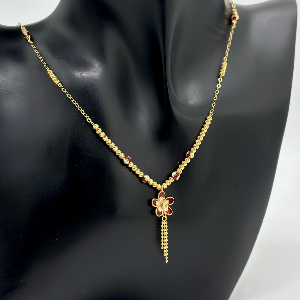 استمتعي بلمسة من الفخامة والجمال مع عقد الذهب الرائع. ارتدي هذه القطعة المذهلة وكن محط الأنظار في أي مناسبة. تألقي بأناقة لا تضاهى وتأثير ساحر يترك الجميع مندهشين
