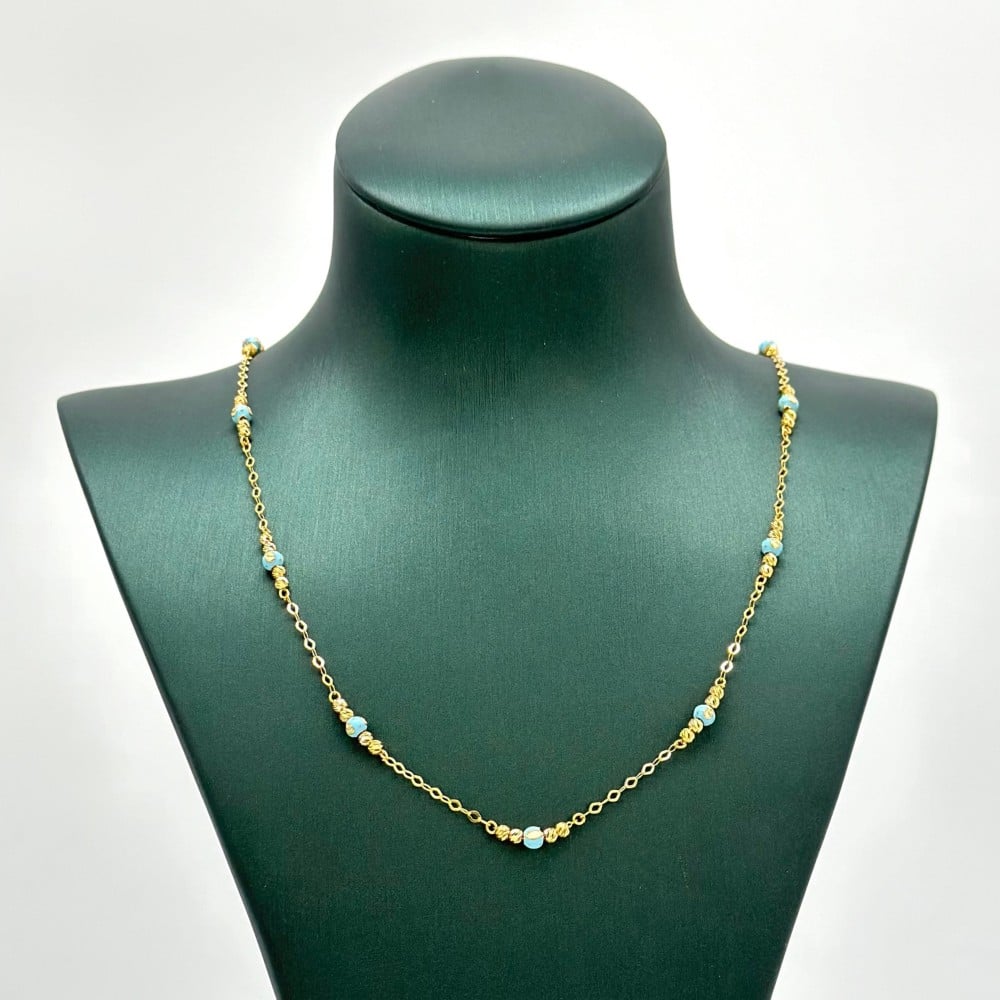 استمتعي بلمسة من الفخامة والجمال مع عقد الذهب الرائع. ارتدي هذه القطعة المذهلة وكن محط الأنظار في أي مناسبة. تألقي بأناقة لا تضاهى وتأثير ساحر يترك الجميع مندهشين.