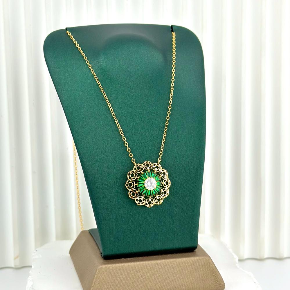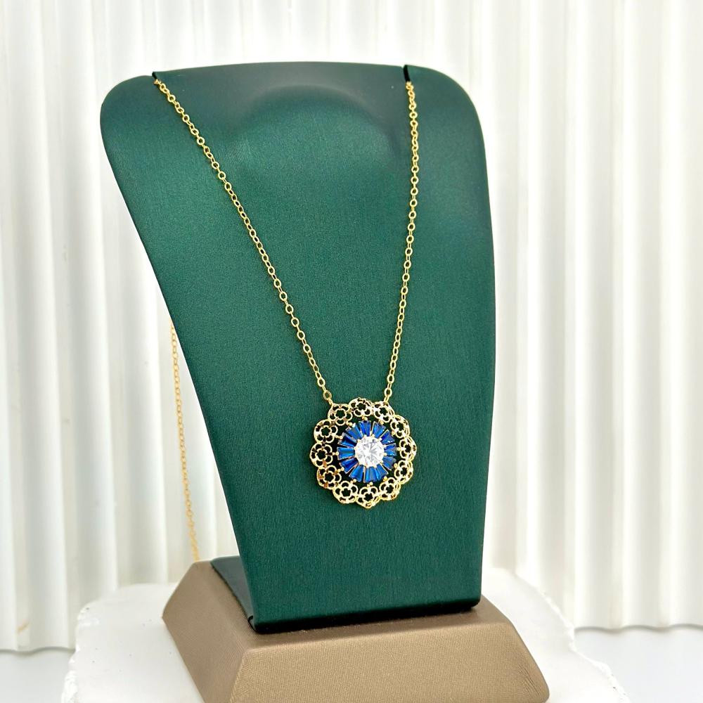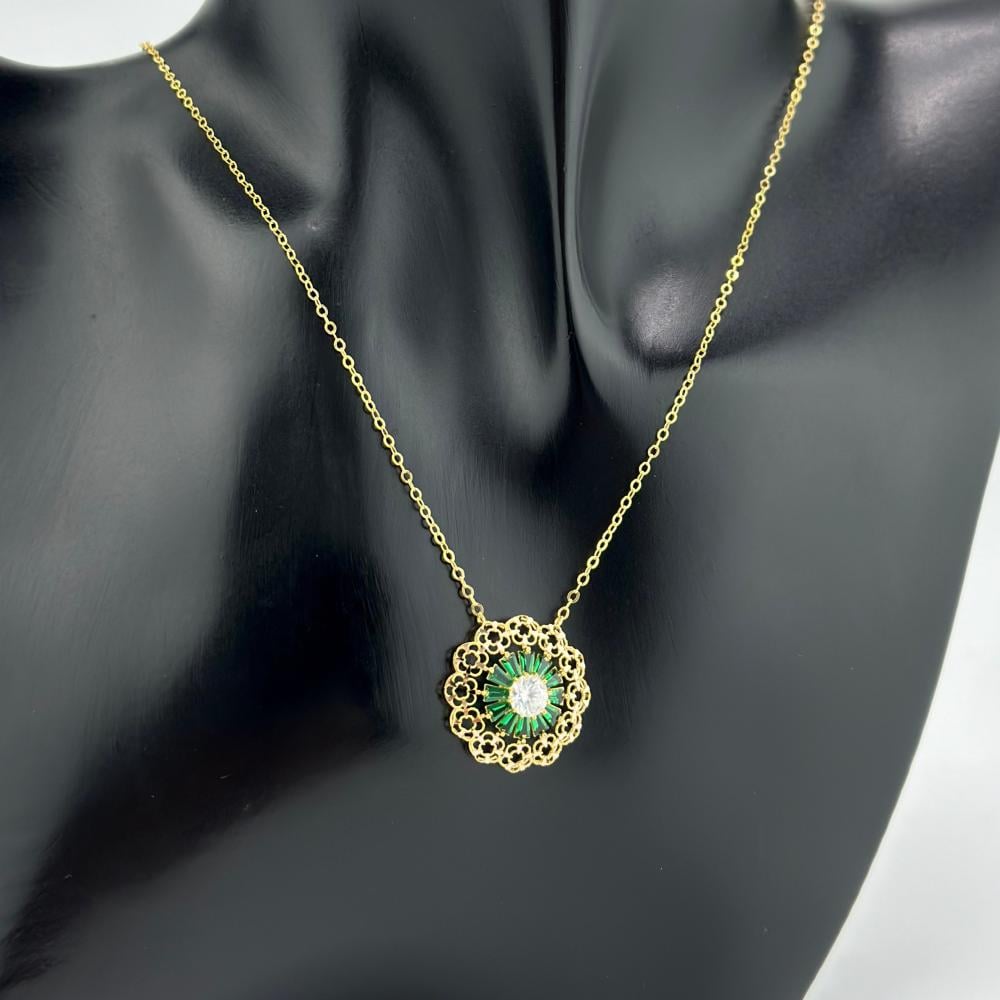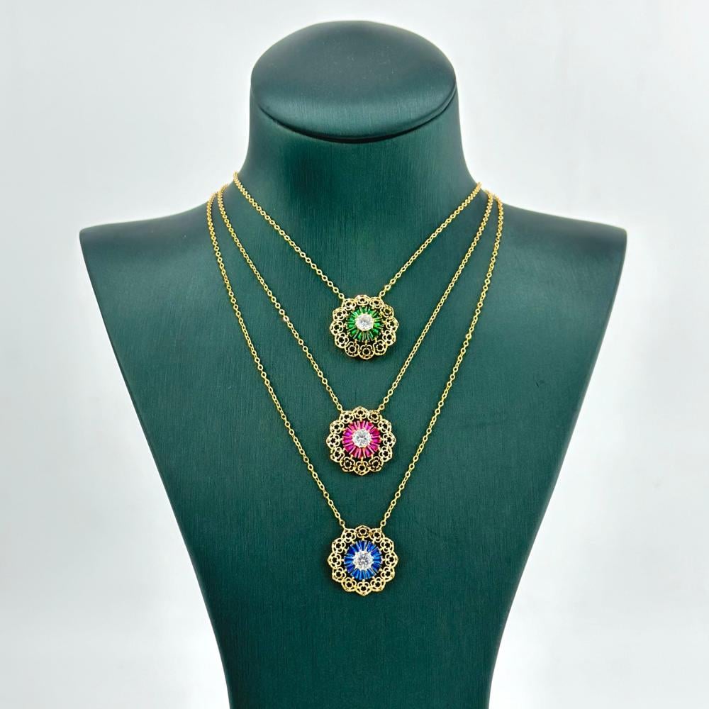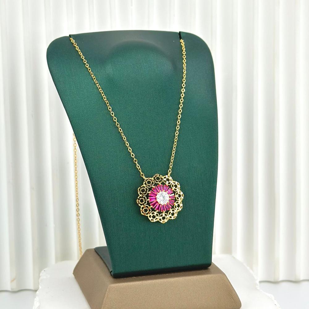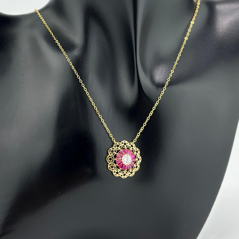 عقد وردة بحجر ملون ( 2.6 جرام - عيار 21 - NE0496 )
