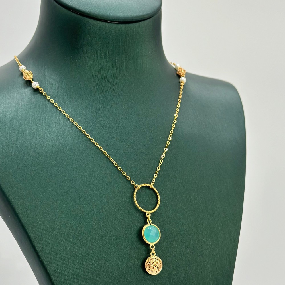 ارتدي عقد الذهب وكأنك تأمري العالم بجمالك. يتميز بقلادة جذابة ومتألقة تحمل في طياتها سحرًا لا يقاوم. سيأسر هذا العقد الأنظار ويثير إعجاب الجميع بتصميمه الفريد الذي يجمع بين الأناقة والجمال.