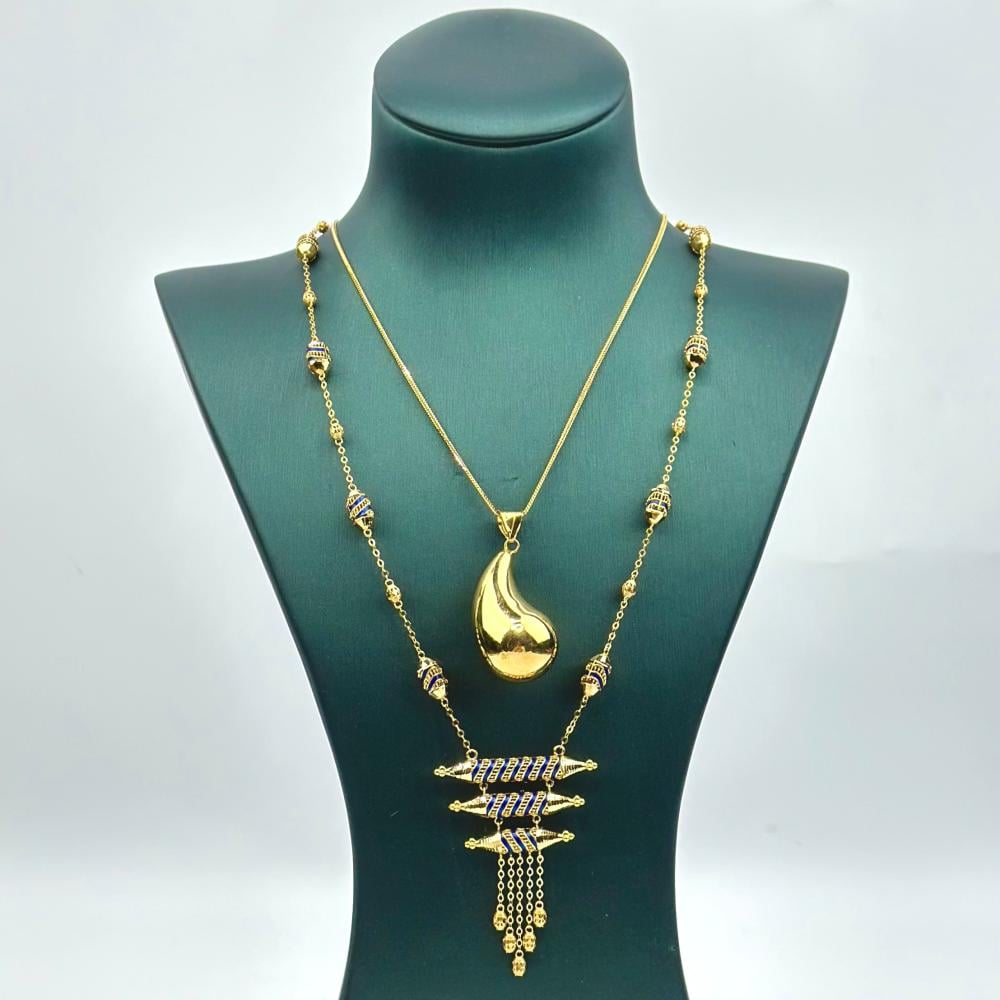 أضيفي لمسة فاخرة من التألق إلى إطلالتك مع هذه التنسيقات الراقية من عقدين ذهب عيار 21، صمما بعناية ليكمّلا بعضهما بتناغم مثالي. يجمع التصميم بين البساطة والفخامة، مما يجعله الخيار الأمثل لكل امرأة تبحث عن أناقة يومية أو إطلالة مميزة للمناسبات.