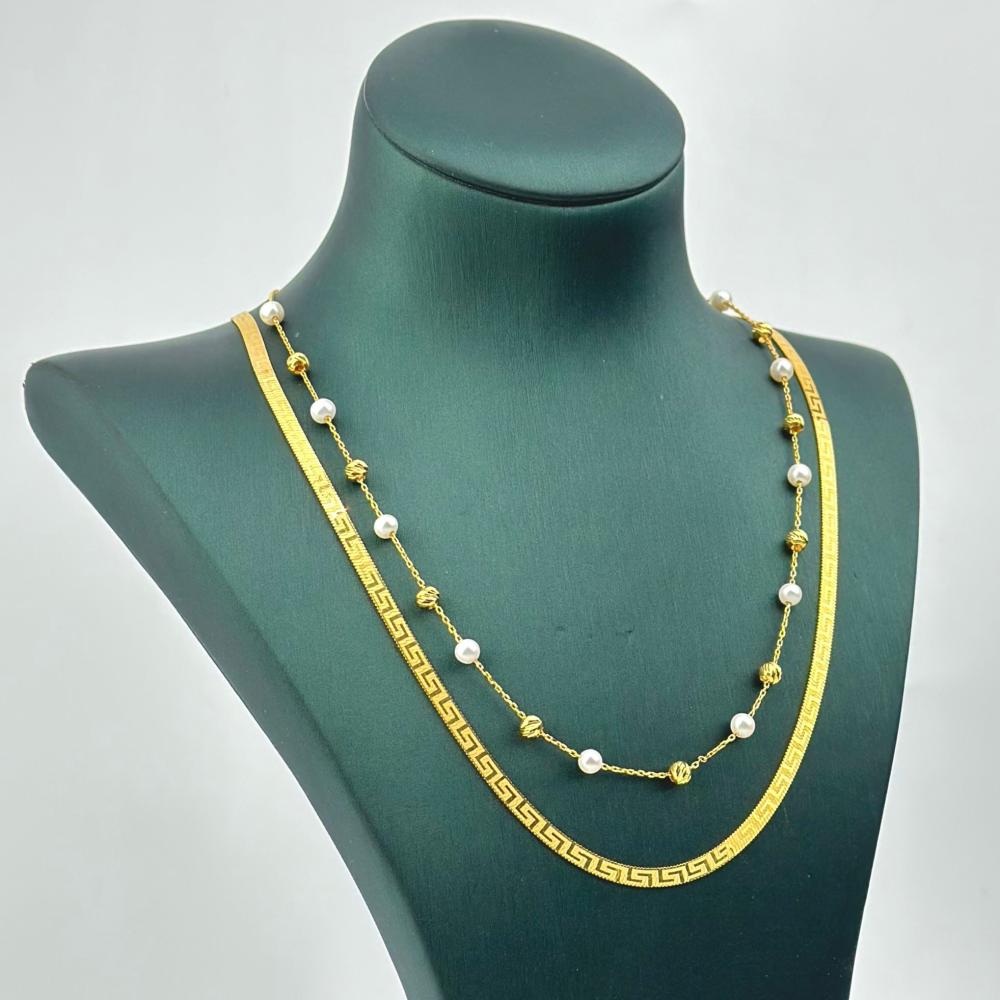 أضيفي لمسة فاخرة من التألق إلى إطلالتك مع هذه التنسيقات الراقية من عقدين ذهب عيار 21، صمما بعناية ليكمّلا بعضهما بتناغم مثالي. يجمع التصميم بين البساطة والفخامة، مما يجعله الخيار الأمثل لكل امرأة تبحث عن أناقة يومية أو إطلالة مميزة للمناسبات.