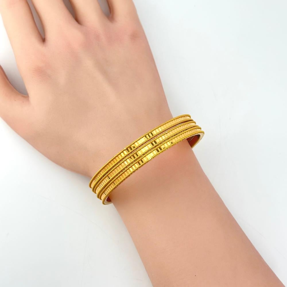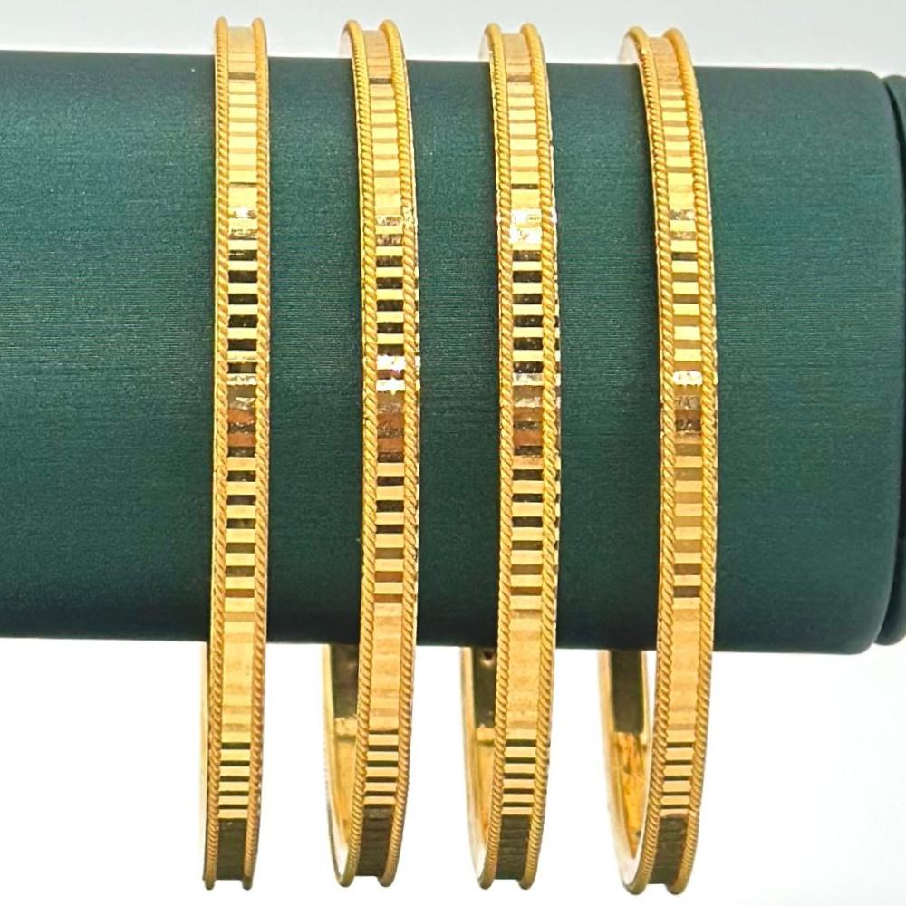 غوايش فاخرة مصاغة من ذهب عيار 21 الخالص، مستوحاة من التصميم الأيقوني لسوار ساعة رولكس الكلاسيكية، لتمنح مرتديتها إحساسًا بالفخامة والدقة. تأتي الغوايش على شكل روابط مترابطة تشبه تلك الموجودة في سوار الساعة، بتفاصيل محكمة تمنحها مظهرًا عصريًا ومترفًا في آنٍ واحد.