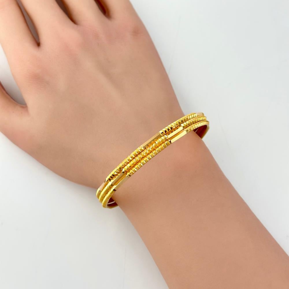 استوحي هذا التصميم الراقي من عقال الملك فيصل – رمز الهيبة والمكانة – ليعيد إحياء المجد العربي في قطعة مجوهرات فاخرة لا تُضاهى. غوايش ذهب عيار 21 صب بتصميم متكامل، يعكس الحِرَفية العالية والتفاصيل المميزة التي تميز العقال الملكي الشهير.