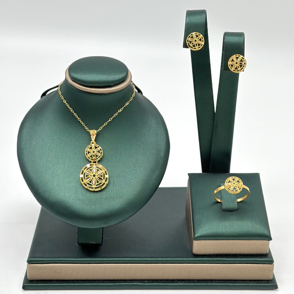 استمتعي بتألقك واجذبي الأنظار بأطقم الذهب عيار 21 من مجوهرات الشلوي.