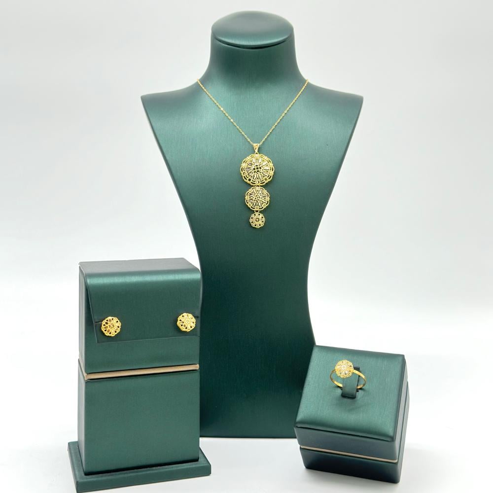 استمتعي بتألقك واجذبي الأنظار بأطقم الذهب عيار 21 من مجوهرات الشلوي.