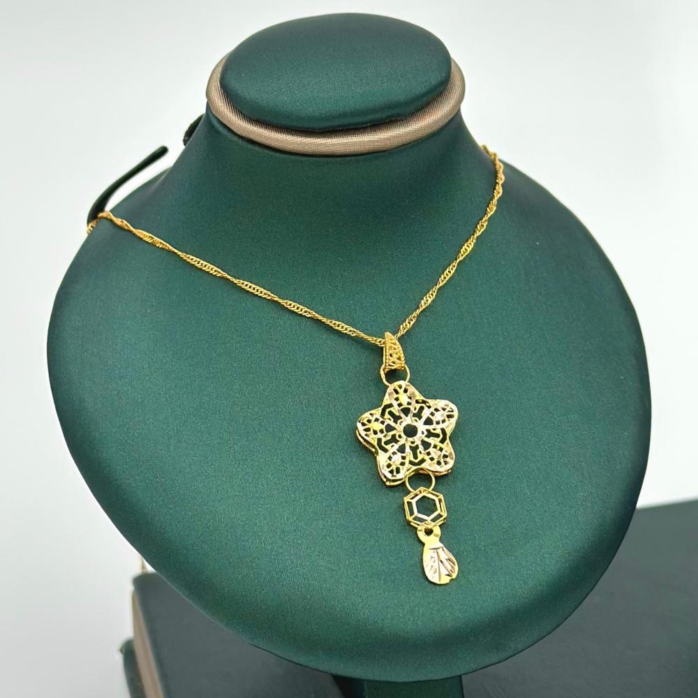 إن اللمعان الذهبي الرائع الذي يتمتع به نصف طقم الذهب عيار 21 يجذب الأنظار ويعكس تألقه الفريد. يتلألأ الذهب الخالص بجماله المتلألئ تحت أشعة الشمس والإضاءة، مما يضفي على الطقم سحرًا لا يقاوم.