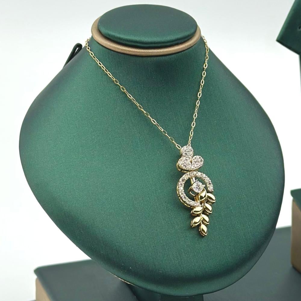 نصف طقم من مجوهرات الشلوي، مصنوع من ذهب اصفر عيار 18، يضفي على إطلالتك لمسة من الأناقة والرومانسية. تتألق فصوص الزركون وقصات الباقييت بتصميم يحاكي جمال الورود المتفتحة، تزينها قطرات أنيقة تضيف سحرًا وجاذبية، مما يجعلك تتألقين بجمال طبيعي وفريد في كل مناسبة.