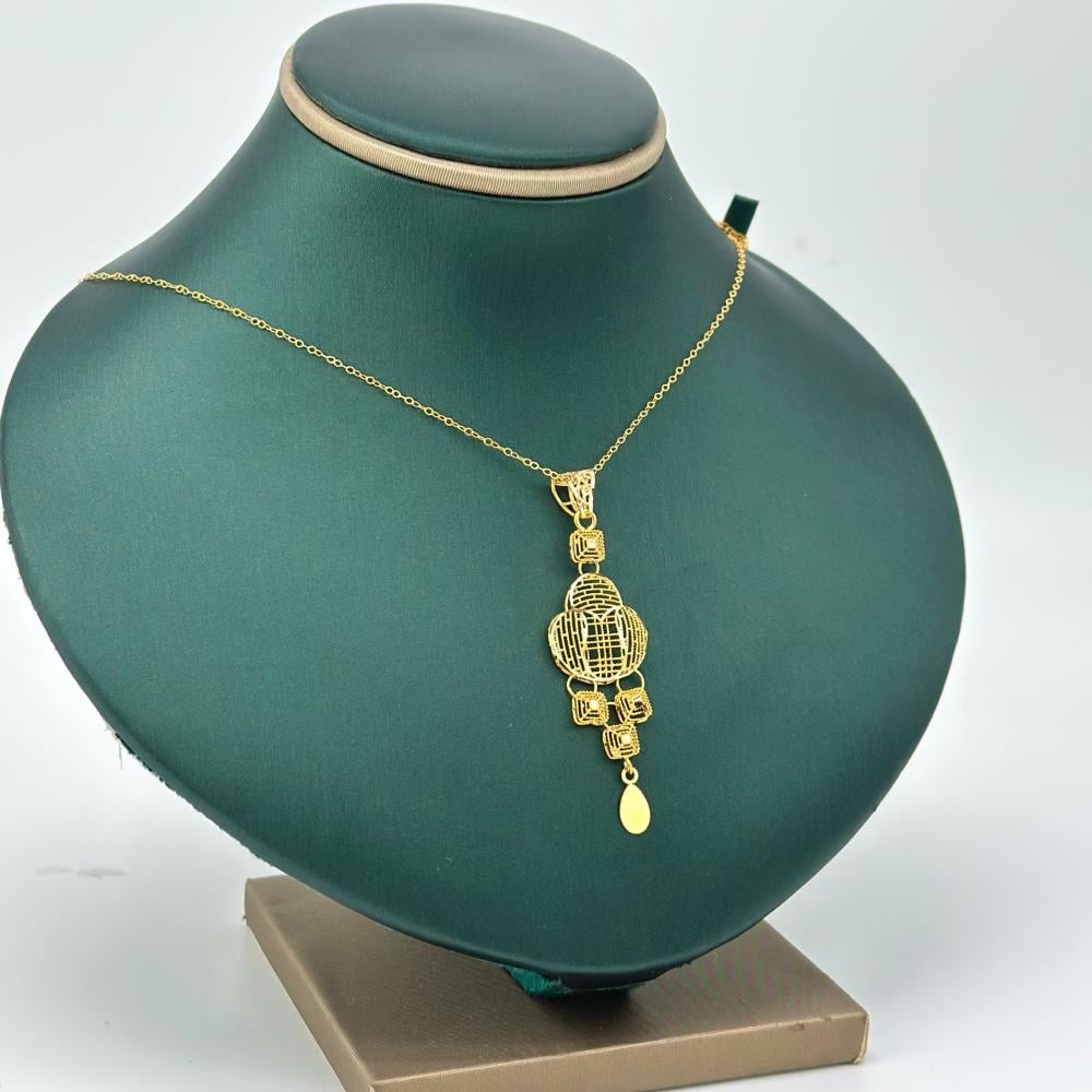 إن اللمعان الذهبي الرائع الذي يتمتع به نصف طقم الذهب عيار 21 يجذب الأنظار ويعكس تألقه الفريد. يتلألأ الذهب الخالص بجماله المتلألئ تحت أشعة الشمس والإضاءة، مما يضفي على الطقم سحرًا لا يقاوم.