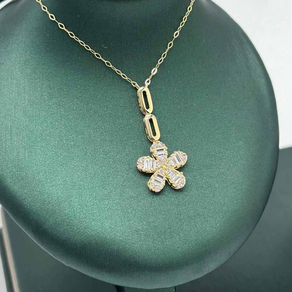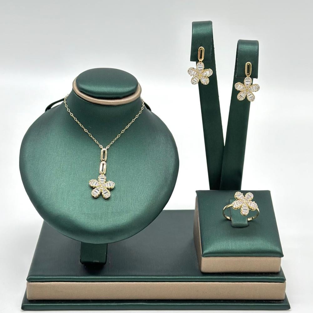 استمتعي بلمسة من الفخامة مع مجموعة نصف مجوهرات الذهب عيار ١٨ من مجوهرات الشلوي. تتألف هذه القطع الرائعة من قلادة تضفي بريقًا مذهلاً على عنقكِ، وخاتم يضفي لمسة ساحرة على أصابعكِ، وأقراط تبرز جمال وجهكِ بأناقة لا مثيل لها. بفضل ترصيعها بالزركون والأحجار ذات قصة الباجيت، تجسد هذه المجموعة التفرد والأناقة الراقية التي تناسب المرأة العصرية والأنيقة. اجعليها جزءًا من إطلالتكِ اليومية أو احتفظي بها للمناسبات الخاصة، واستمتعي بلمعانها الخلاب وسحرها الدائم.✨