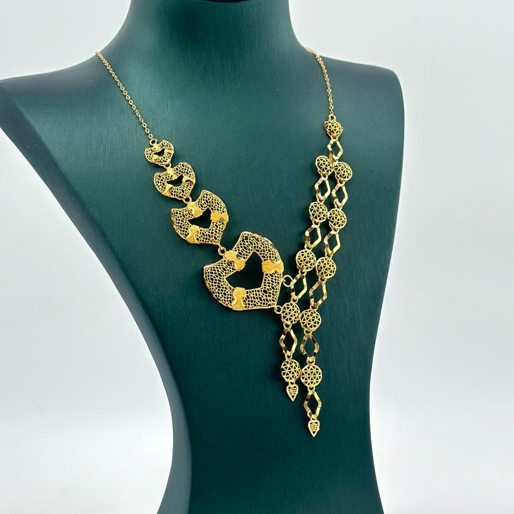 "طقم الحب" أفخم طقم ذهب عيار 21 ، بوزن 17.4 جرام، تصميم راقٍ يجسد معاني الحب والرومانسية. هدية مثالية تعبّر عن مشاعرك بأسلوب فاخر ولمسة من الأناقة الخالدة. متوفر الآن، لا تفوت الفرصة.✨