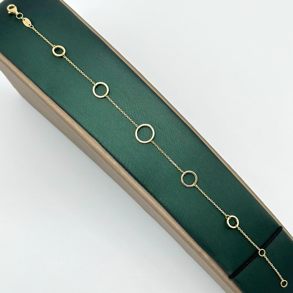 تعبر هذه الأسوارة الساحرة عن فن الجمال والأناقة بأبهى صورة، فهي قطعة فريدة من نوعها تمزج بين الأناقة الكلاسيكية والتصميم العصري. تتألق هذه الأسوارة ببريق الذهب الخالص عيار 18، حيث تتجلى جماليتها في شكل دوائر متفرقة تتألق بلمعان رائع. إنها قطعة مذهلة تعكس روعة حرفية مجوهرات الشلوي، وتضيف لمسة ساحرة من الجمال إلى أي إطلالة.✨