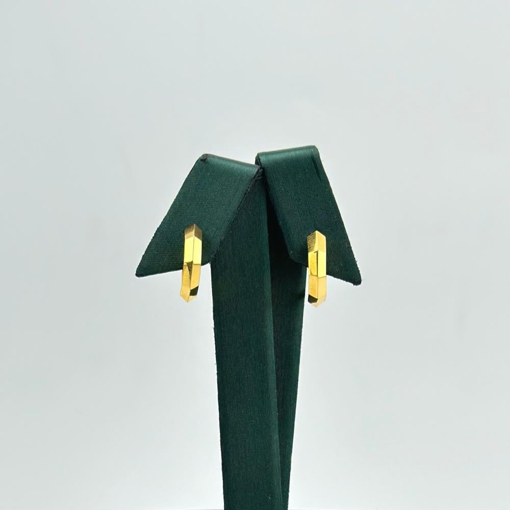 حلق ذهب أصفر عيار 21 بتصميم دائري يتألق بتكسرات أنيقة تضفي عليه لمسة عصرية وفريدة. يجمع هذا الحلق بين البساطة والفخامة، ليكون إضافة مثالية تبرز جمالك بأناقة راقية وتلفت الأنظار بأسلوبه المتميز.