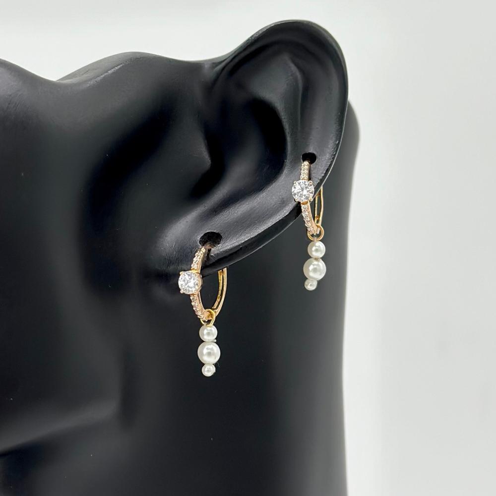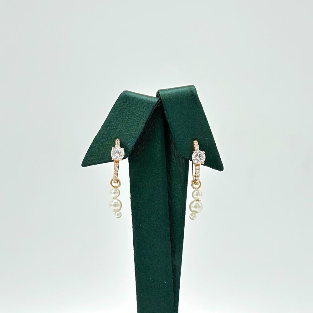 هذا الحلق الذهبي عيار 18 يتلألأ كأحلام ليلة صيف، يتزين بحبات لؤلؤ ناصعة وفص السولتير البراق، محاطًا بفصوص الزركون اللامعة كنجوم تتراقص في سماء حالمة.✨