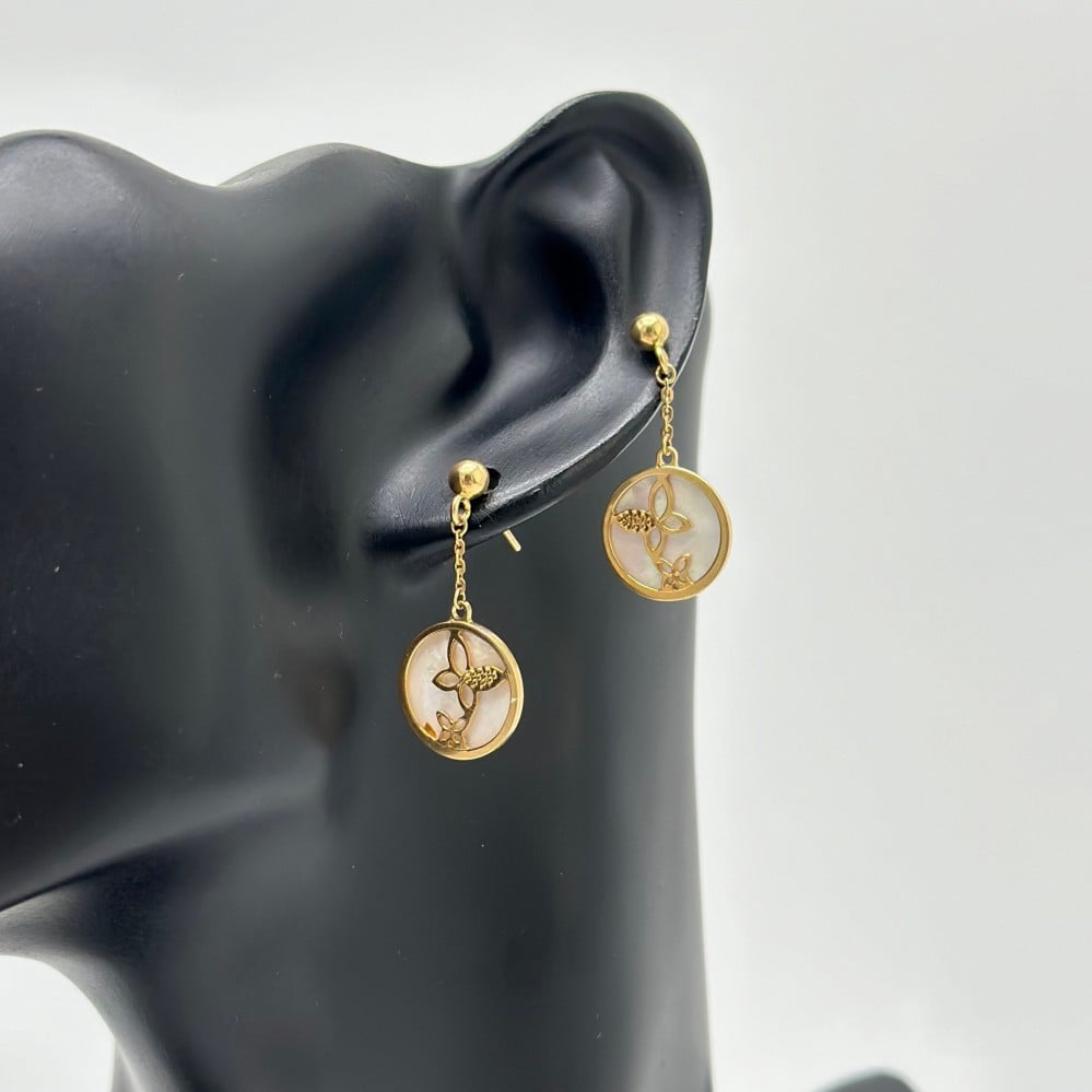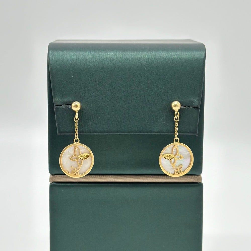 حلق ناعم تصميم ايطالي مع الصدف ( 4.0 جرام - عيار 18 - EA0028 )