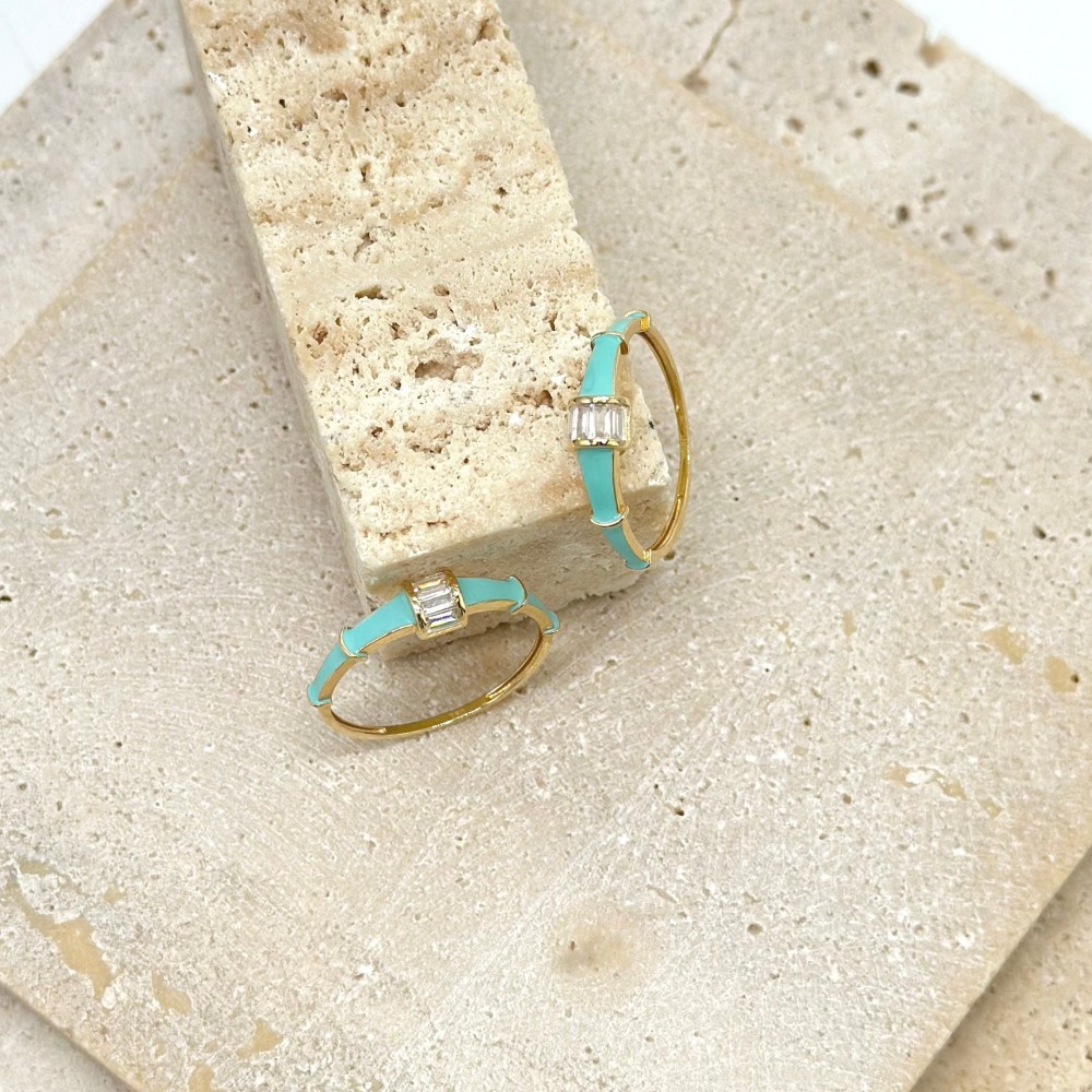 تتناغم الألوان المتناسقة بشكل رائع مع بريق الذهب، مما يجعل الخاتم قطعة فريدة وجذابة تتألق بأناقة في كل مناسبة. بتفاصيله الدقيقة والمتقنة، يبرز الخاتم كتحفة فنية تجمع بين الجمال والأناقة بأسلوب لا مثيل له.