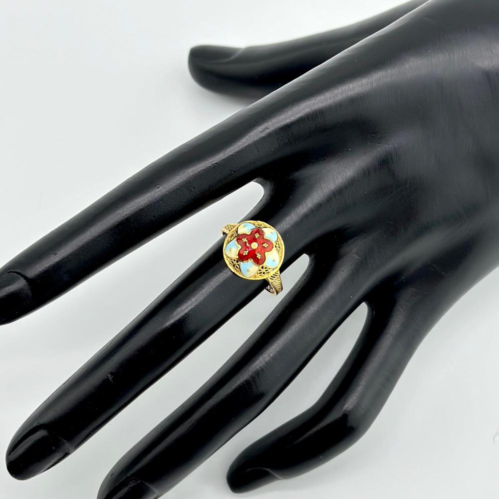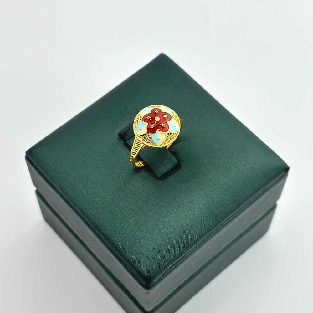 خاتم ذهبي فاخر عيار 21 بنقش هندي تقليدي وألوان مينا زاهية، يجسد جمال الفن الهندي ويضفي لمسة ثقافية ساحرة على إطلالتك.✨