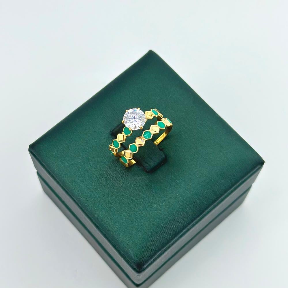 توينز بزريكون وسوليتير، يجسدان السحر والجمال، حيث تتلألأ الزريكون بألوانه الساحرة ويتألق فص السوليتير كقطعة فنية نادرة، محاكين لأجمل اللحظات في قلب الحب.✨