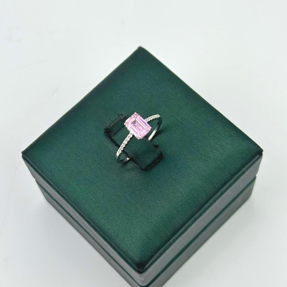 خاتم "تاج الغرام" هو قطعة مجوهرات استثنائية تجمع بين الرقي والفخامة، مصممة بعناية فائقة لتكون رمزًا للأناقة والرومانسية. يتميز هذا الخاتم بتفاصيله الدقيقة التي تبرز جمال الذهب الأبيض ولمعانه الساحر، مع إضافة لمسة من الأنوثة والجاذبية من خلال الفصوص المتألقة, يتوسط الخاتم حجر أنيق مربع بلون وردي براق، يرمز إلى الرومانسية والجمال, تم اختيار الحجر بعناية ليكون محط الأنظار، حيث يعكس الضوء بلمعان مميز يضفي على الخاتم طابعًا راقيًا وفريدًا.