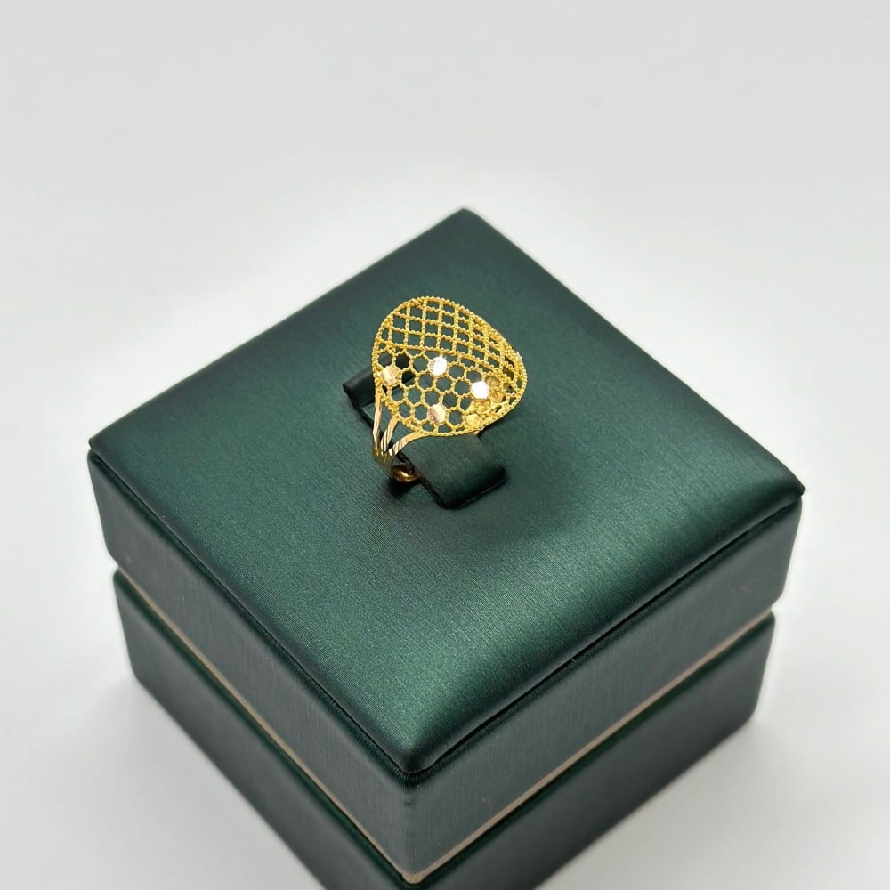 خاتم الذهب عيار 21 من مجوهرات الشلوي، تحفة راقية تمزج بين الأناقة والفخامة، يزين أصابعك ببريق فاخر يناسب جميع الأوقات والمناسبات.