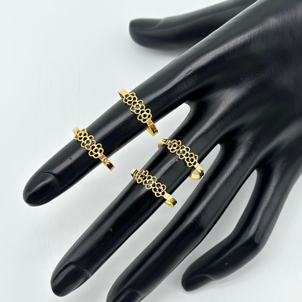 خاتم ذهبي عصري عيار 21 بتصميم ورود مصفوفة، يضفي لمسة من الأناقة والتميز بأسلوب حديث وجذاب.