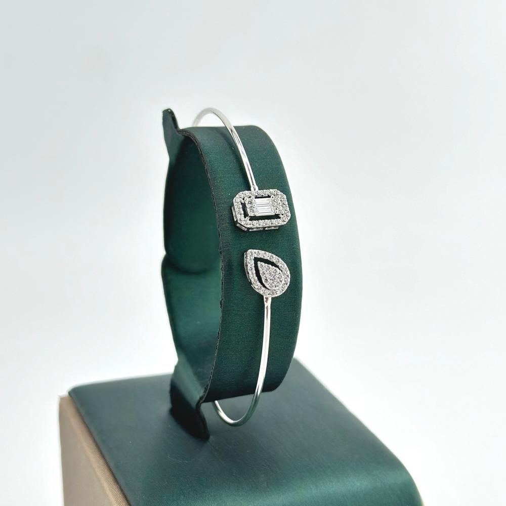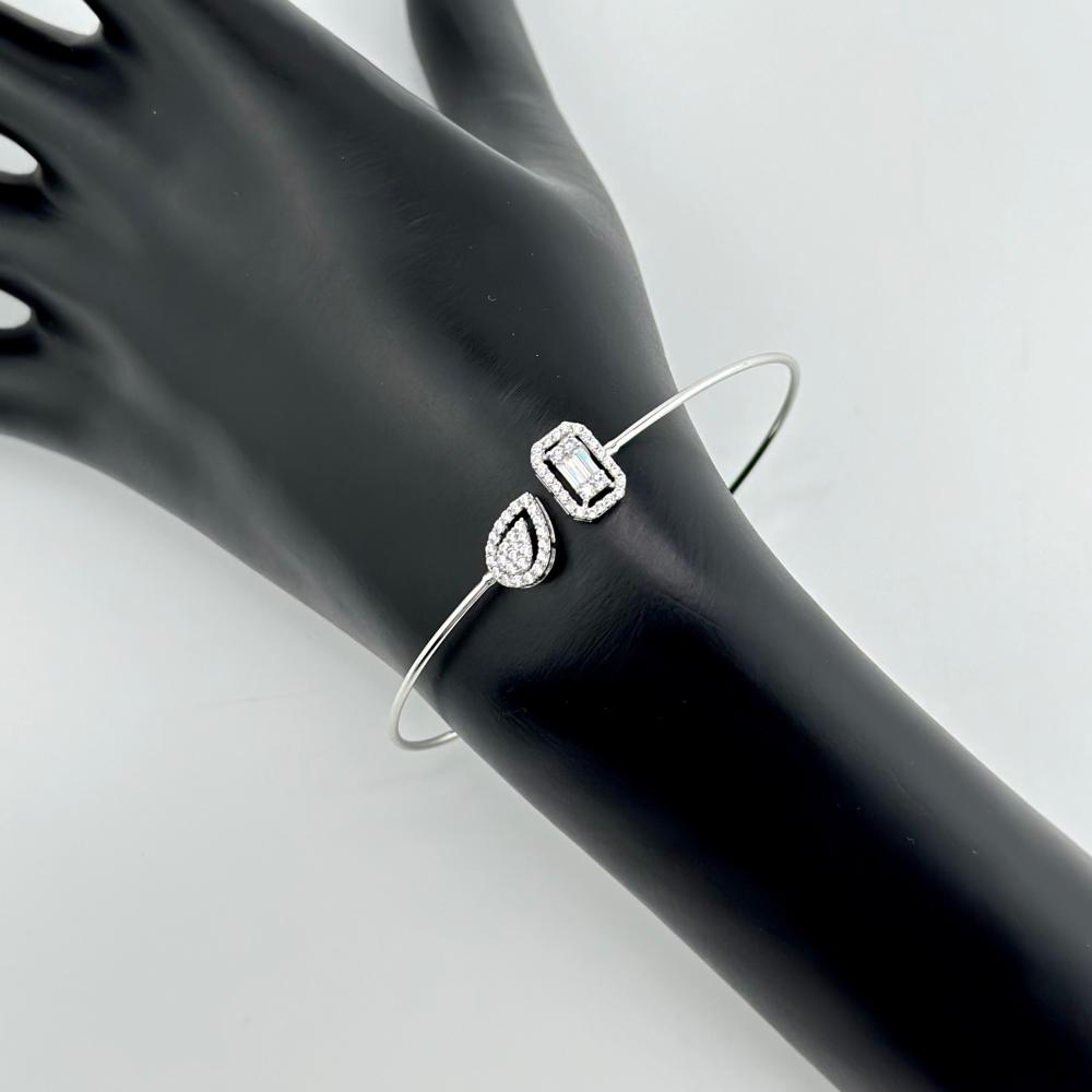 أساورة ذهب أبيض عيار 18 بتصميم ماسي مذهل، مزينة بفصوص بقصات الباغيت الفاخرة وفصوص الزركون البرّاقة. تضفي لمسة من الفخامة والجمال على معصمك، مناسبة للمناسبات الخاصة وللإطلالات اليومية الأنيقة.✨