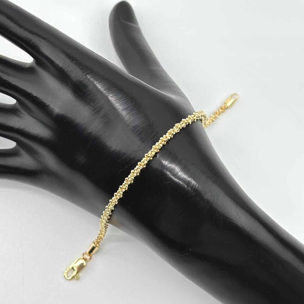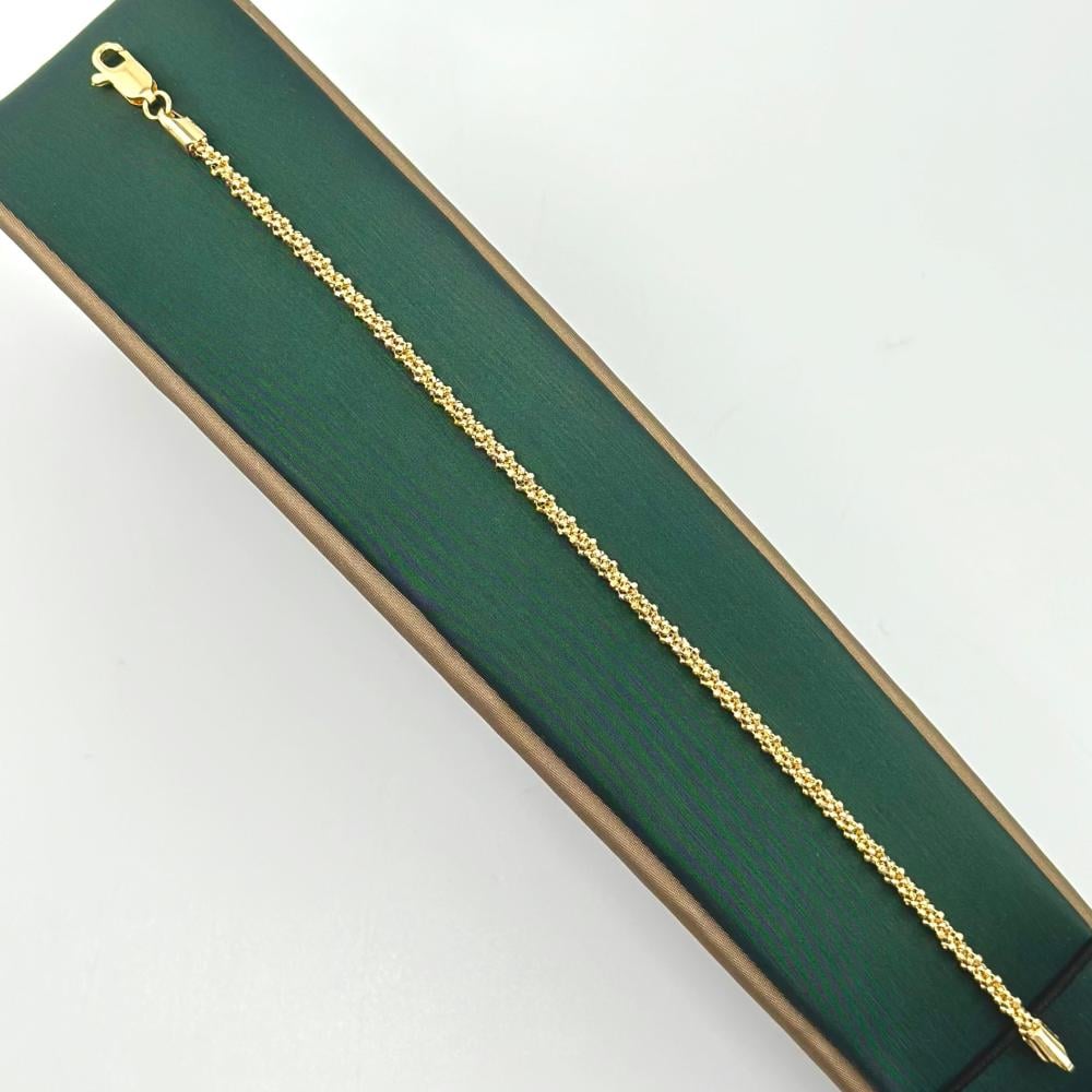 اسوارة ذهب عيار 18 بتصميم أنيق، تتألف من كرات الليزر بألوان الذهب, قطعة فاخرة تجمع بين التنوع والتألق، لتضفي لمسة من الرقي والتفرّد على معصمك في كل مناسبة.