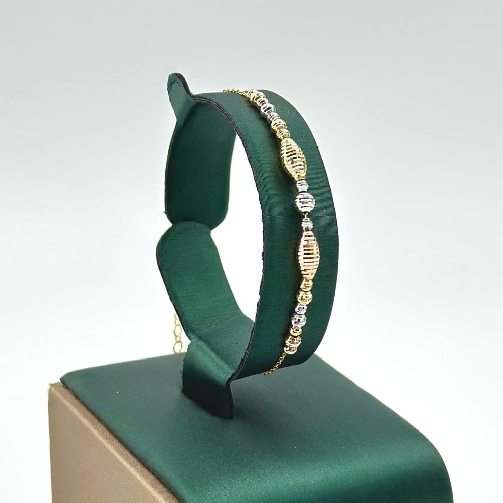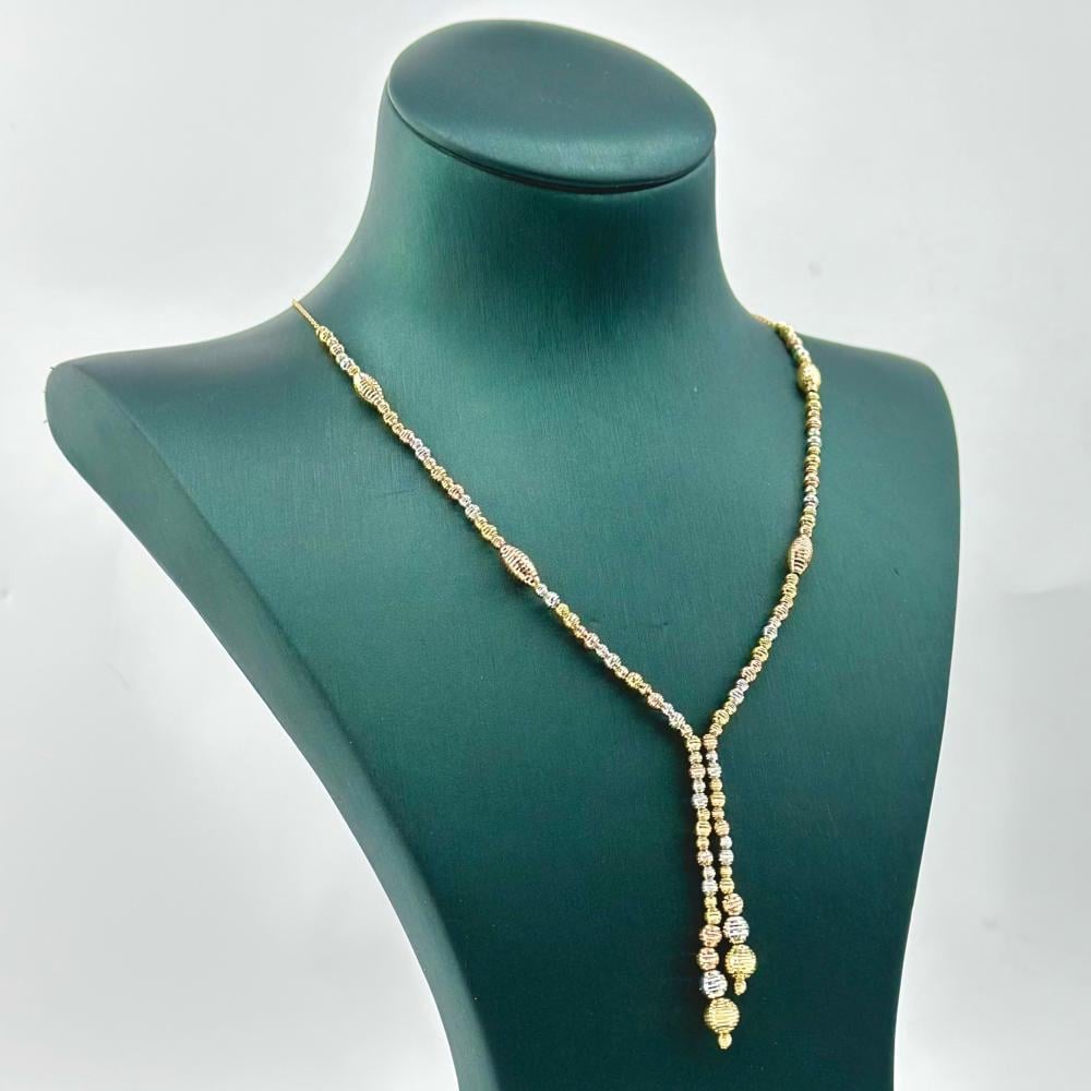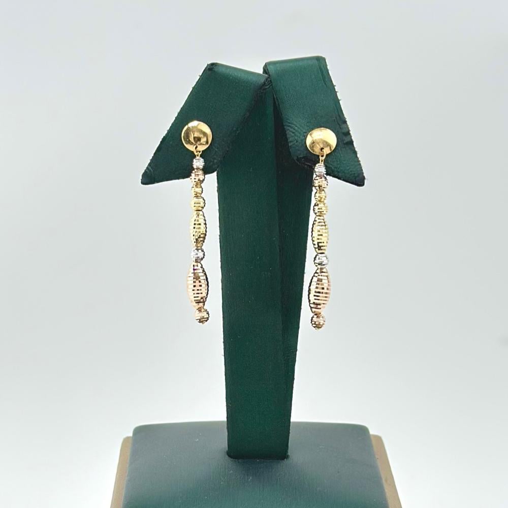 طقم ذهب عيار 18 بلمسة إيطالية عصرية مع كرات الليزر البراقة، بوزن 11.5 جرام. تصميم انيق يضفى لمسة انيقة ويجمع بين الفخامة والابتكار ليمنحك إطلالة مميزة في المناسبات أو الاستخدام اليومي.