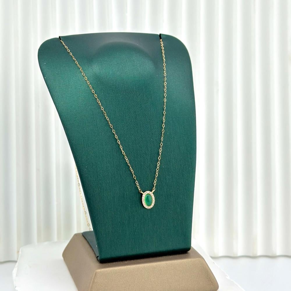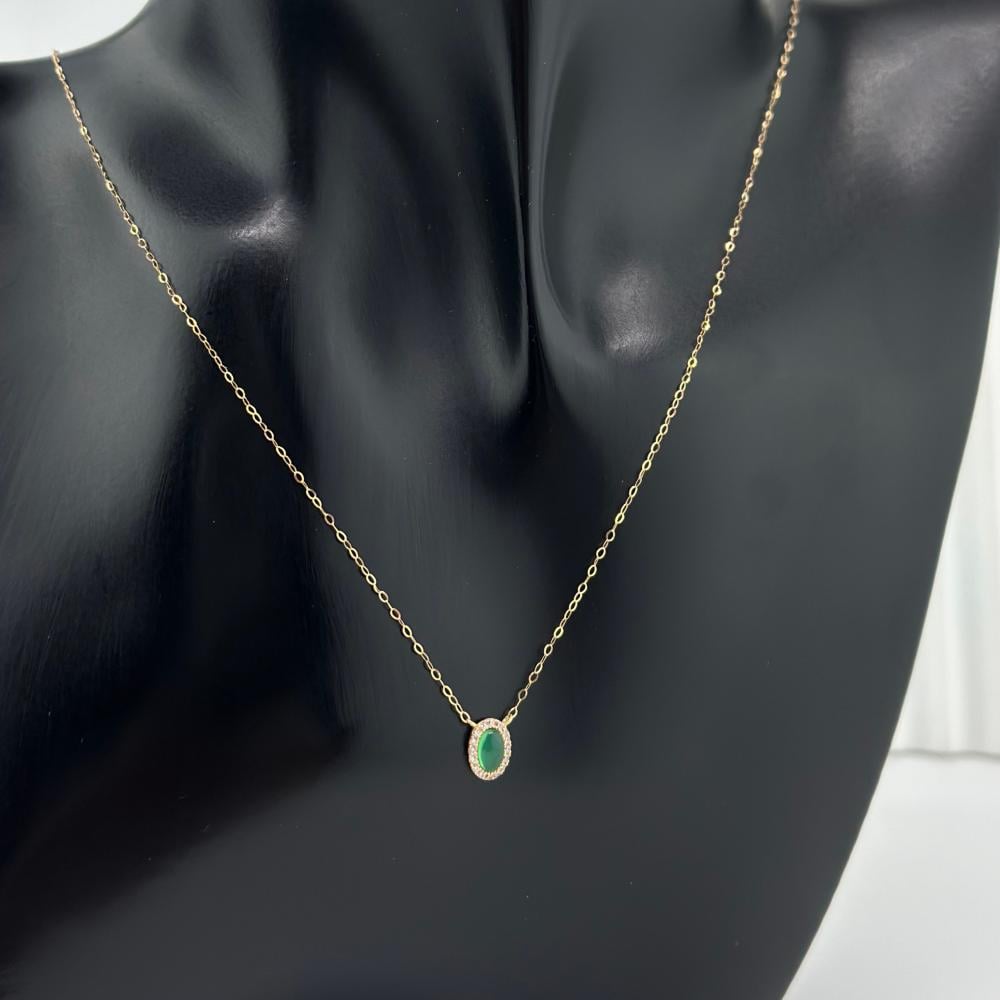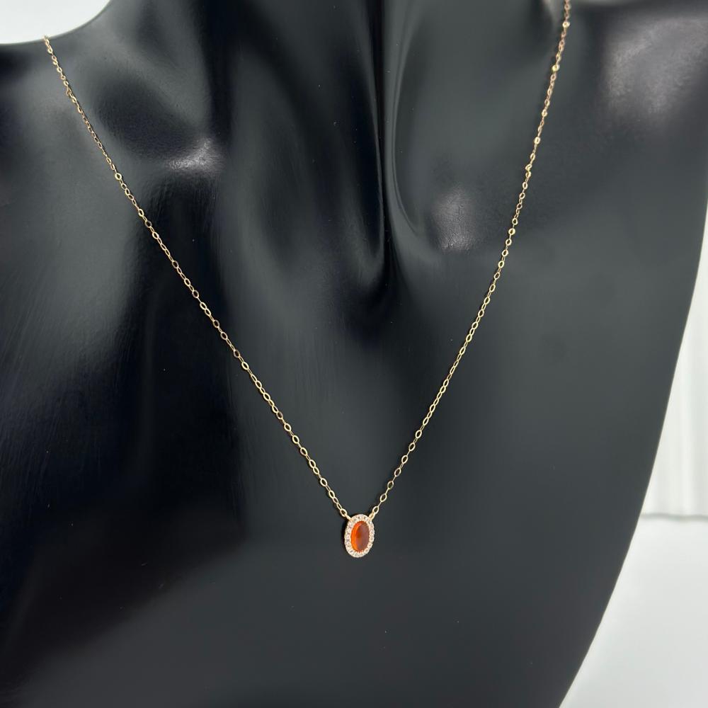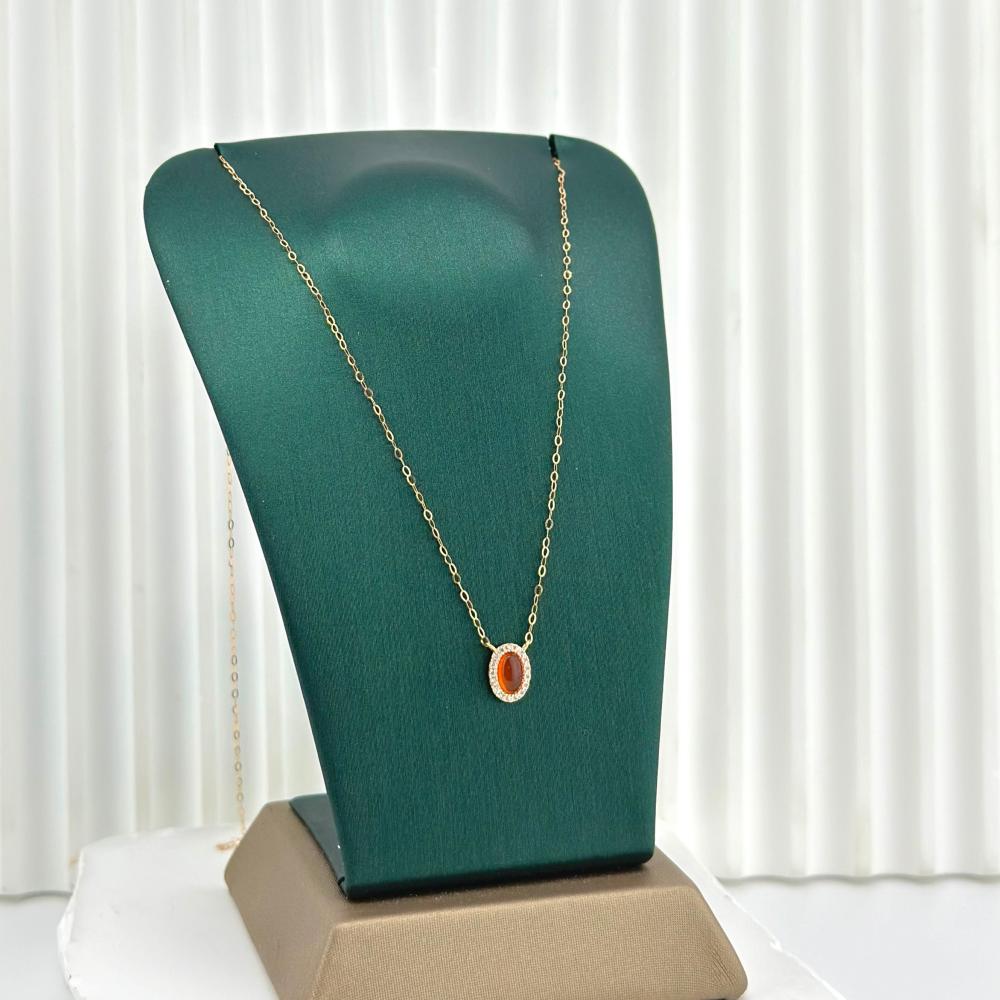 عقد ذهب أصفر تصميم الماس عيار 21 من مجوهرات الشلوي، حيث يأتي بتصميم يحمل في قلبه حجر بشكل دائري ملون محاط بفصوص الزركون البراقة. يجمع هذا التصميم بين الأناقة والفخامة، ليضفي لمسة مميزة على إطلالتك في كل مناسبة.