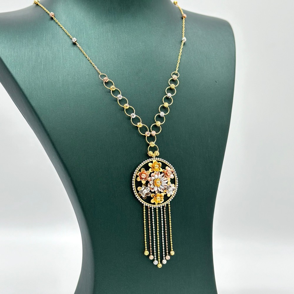 عقد الورود مطعّم بكرات الليزر ( 6.9 جرام - عيار 21 - NE0541 )