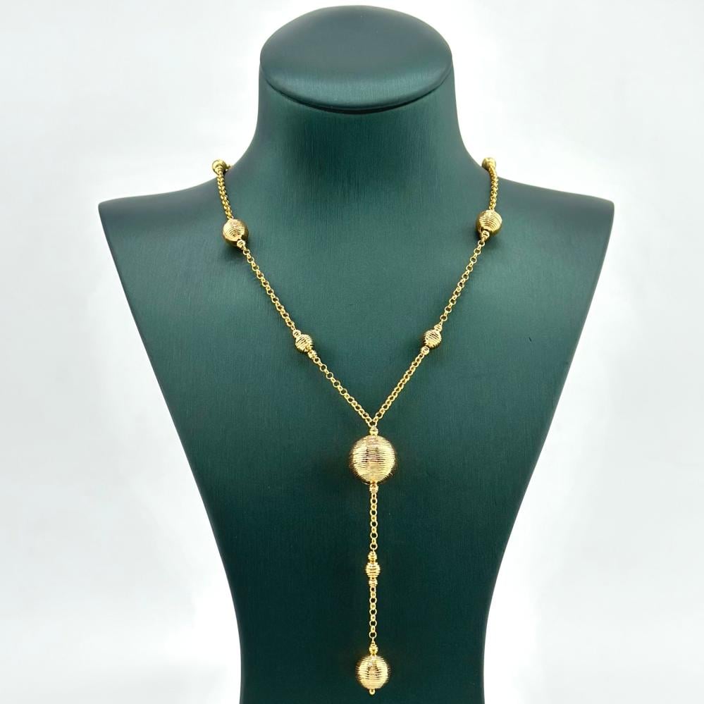 عقد من كرات الليزر الذهبية من مجوهرات الشلوي: أكثر من مجرد عقد، هو رمز للأناقة والجمال الخالد.
